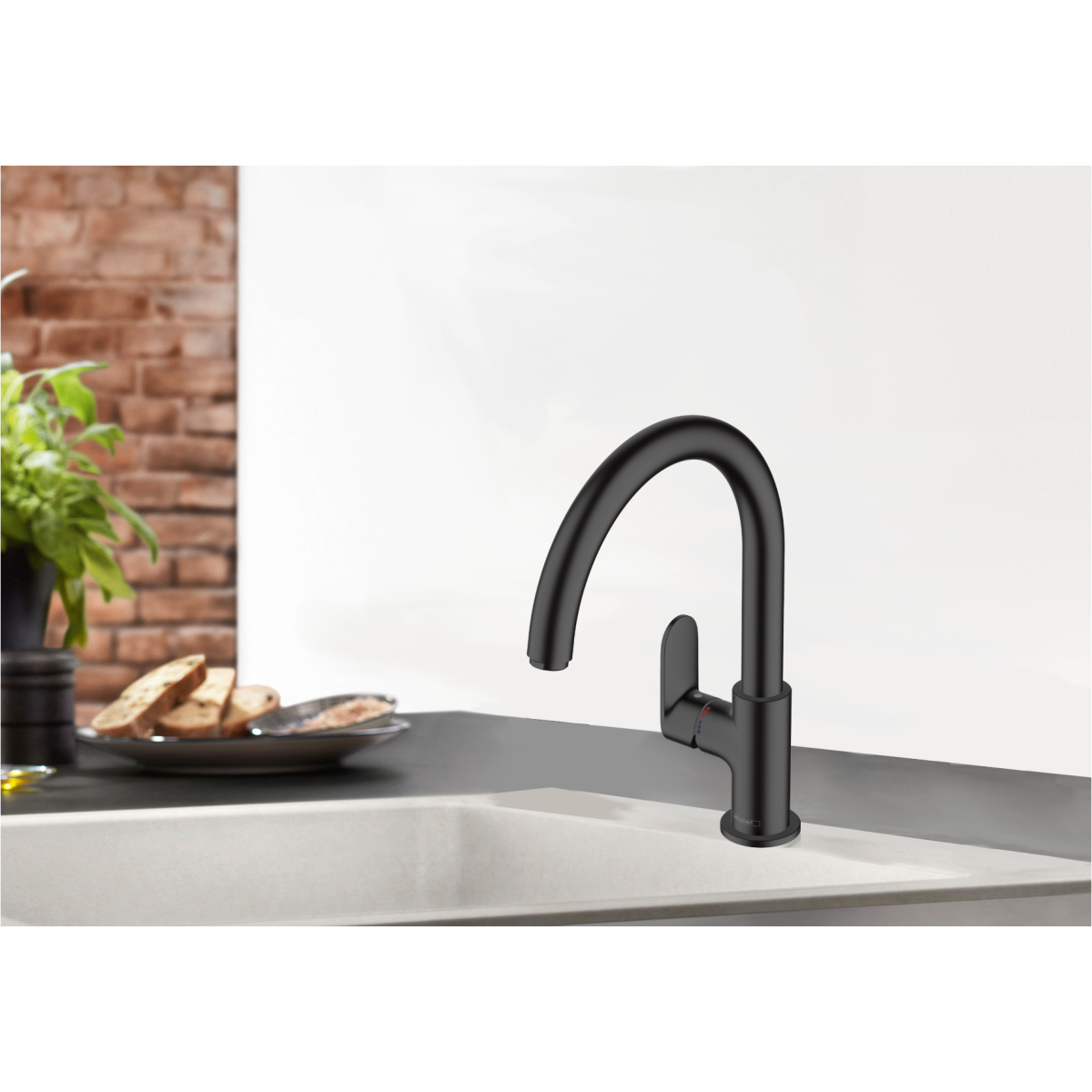 Hansgrohe Vernis Blend egykaros fekete színű, íves álló mosogató csaptelep – kényelmes és megbízható megoldás a modern konyhákba