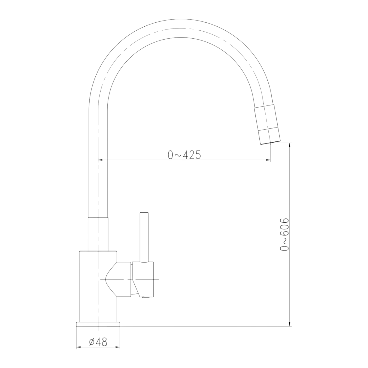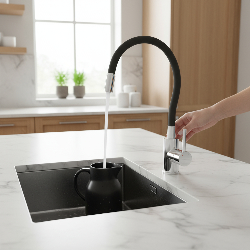 ✅ Álló kivitel, magas ívű flexibilis kifolyó – célzott vízirányítás