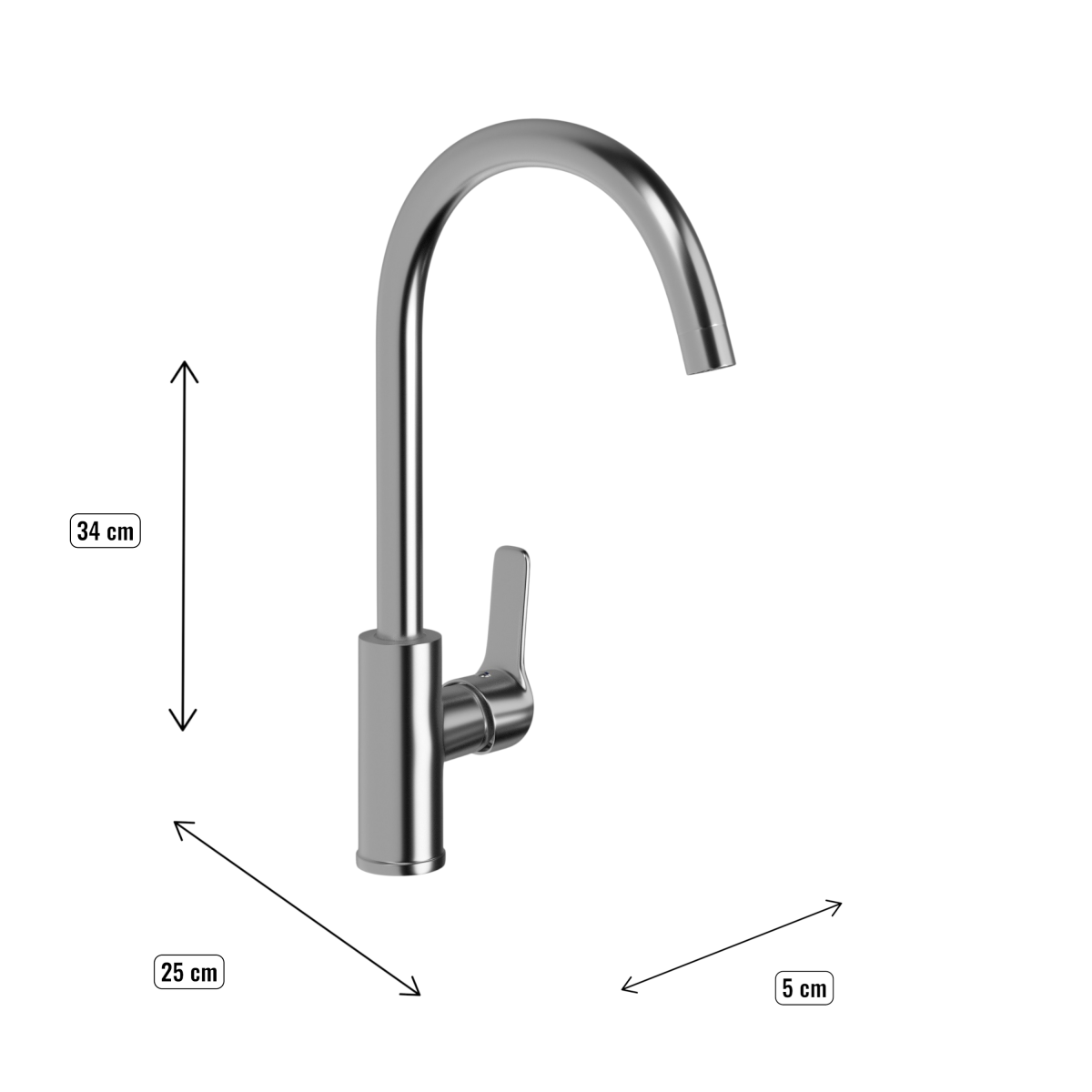 Az Oceano Sigma álló mosogató csaptelep letisztult kialakításával jól illeszkedik modern konyhai környezetekbe. A 35 mm átmérőjű kerámiabetétes elzáróegység pontos és megbízható vízszabályozást tesz lehetővé, az egykaros kialakítás pedig gyors és kényelmes használatot biztosít. A 8 mikronos krómozott felület esztétikus megjelenésű és egyszerűen tisztán tartható. A csaptelep 3/8"-os, 30 cm-es bekötőcsővel szerelt, vízáteresztő képessége pedig meghaladja a 13 liter/percet.