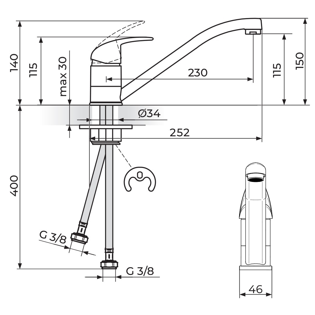 Az Evido Pinguin egykaros, álló gránit mosogató csaptelep antracit színben harmonikusan illeszkedik a természetes hangulatú, letisztult konyhai környezetekbe. Formája modern, mégis időtállóbb, így funkció és esztétika szempontjából is jó választás. A csaptelep ergonomikus karjával könnyedén szabályozhatod a víz hőmérsékletét és erősségét.