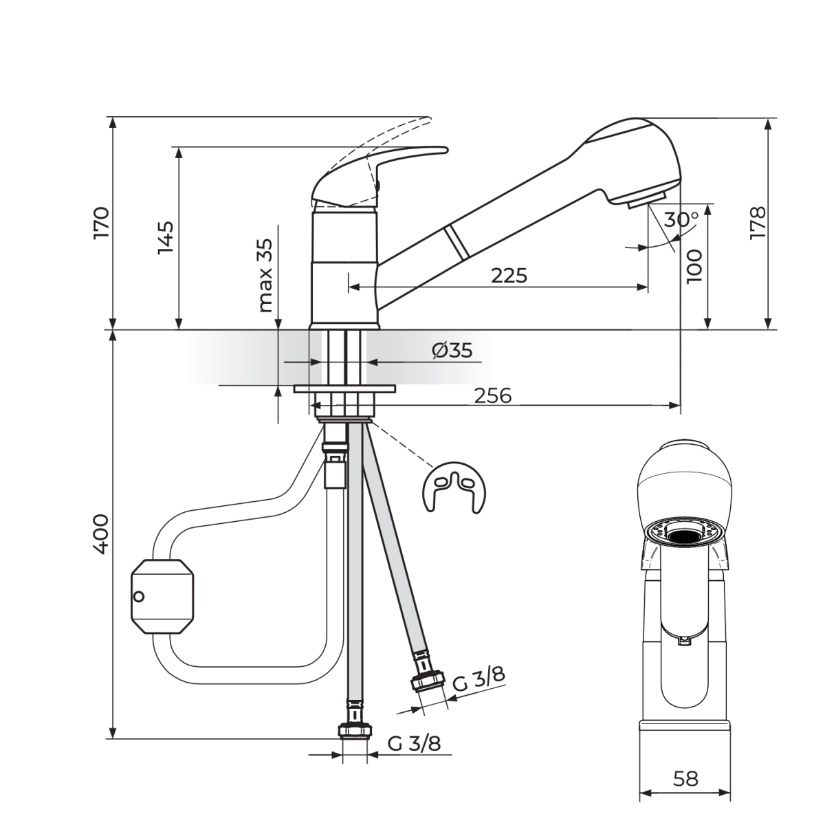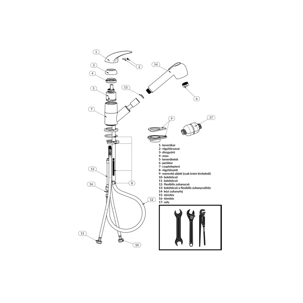 A kihúzható zuhanyfej megkönnyíti a mosogatást és az edények öblítését, így rugalmasabb használatot biztosít.