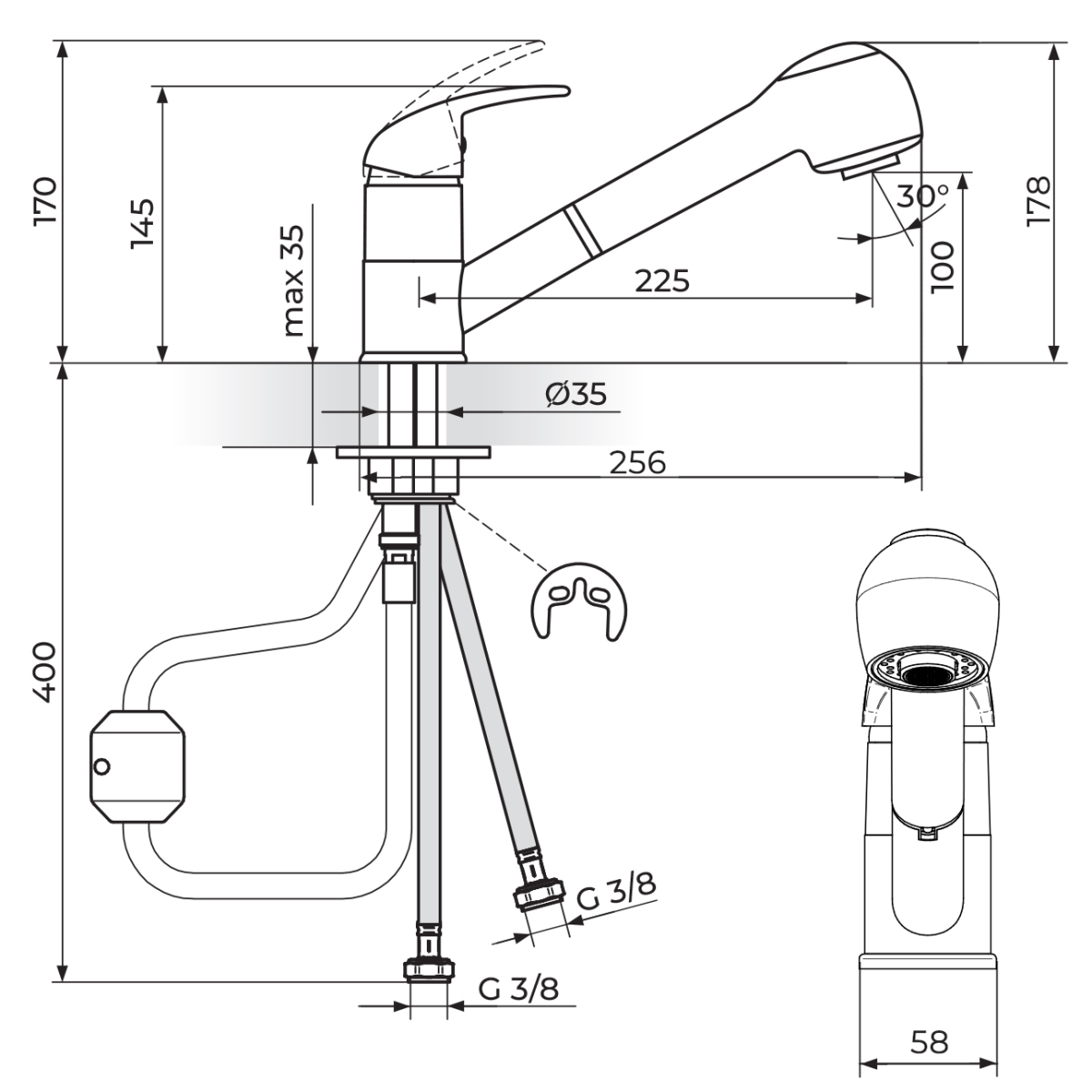A kihúzható zuhanyfej megkönnyíti a mosogatást és az edények öblítését, így rugalmasabb használatot biztosít.