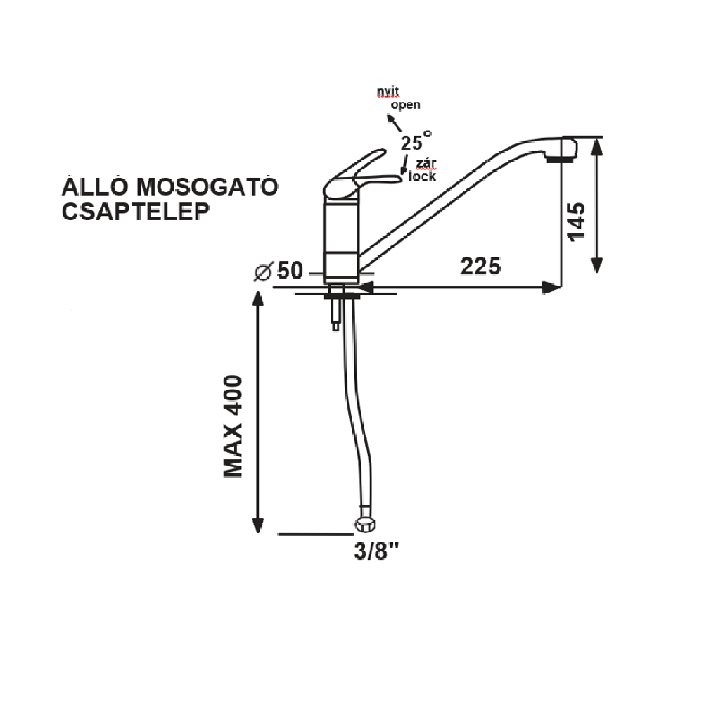 ✅ 3/8" bekötőcső – szabványos méret, egyszerű csatlakoztatás
