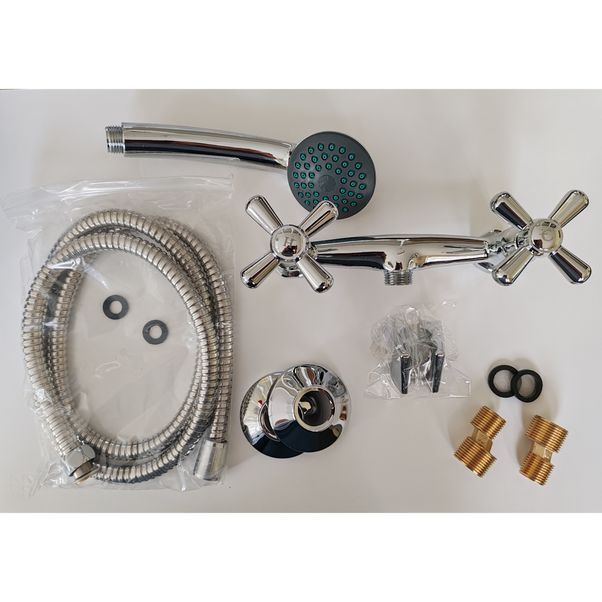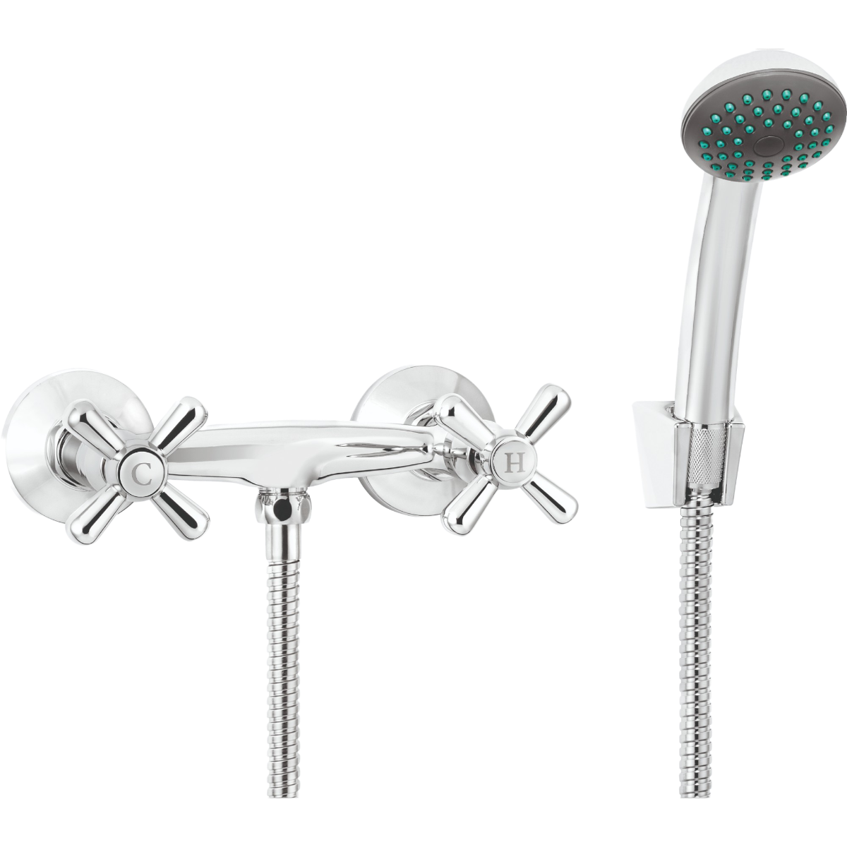 A Symetrio kétkaros fali zuhanycsaptelep hagyományos megjelenésével és jól átlátható működésével praktikus választás a mindennapi zuhanyzáshoz. A külön hideg- és melegvíz-kar pontos beállítást tesz lehetővé, a króm felület pedig időtálló, könnyen tisztán tartható. A zuhanyszett a csomag része, így a termék azonnal használatra kész.