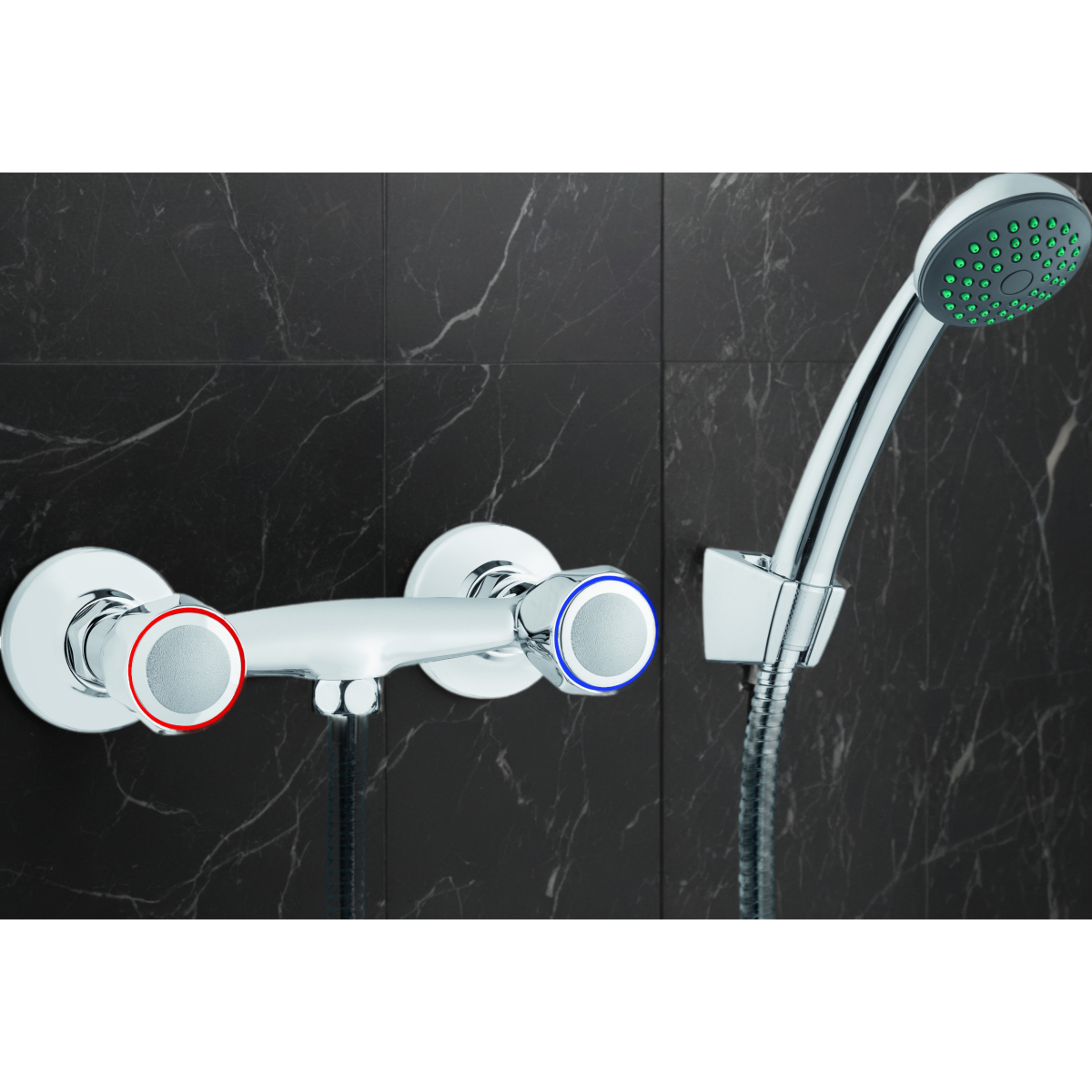 A Teno kétkaros fali zuhanycsaptelep hagyományos megjelenésével és jól átlátható kezelhetőségével megbízható választás a mindennapi zuhanyzáshoz. A hideg- és melegvíz külön karon szabályozható, a króm kivitel pedig időtálló, könnyen tisztán tartható felületet biztosít. A csomagban található zuhanyszettnek köszönhetően azonnal használatra kész megoldást kapsz.