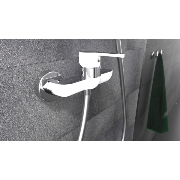 Diziani fehér-króm színű egykaros zuhanycsaptelep, 35 mm-es kerámiabetéttel.
