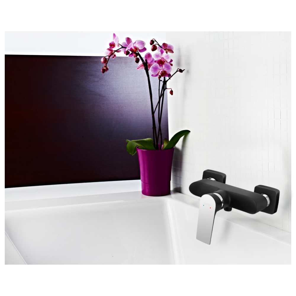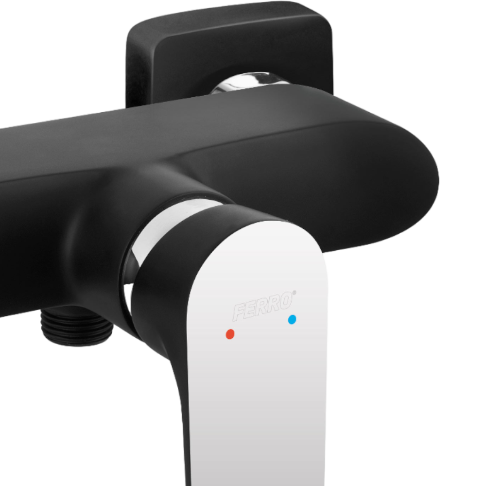A Ferro Algeo Square fali zuhanycsaptelep modern, szögletes formavilágával és matt fekete–króm színkombinációjával markáns megjelenést ad a fürdőszobának. Az egykaros kialakítás lehetővé teszi a vízhőmérséklet és a vízmennyiség pontos, egyszerű szabályozását. Fali kivitele szabványos csatlakozással rendelkezik, így felújításnál és új beépítésnél is jól alkalmazható. A termék zuhanyszett nélkül kerül forgalomba.