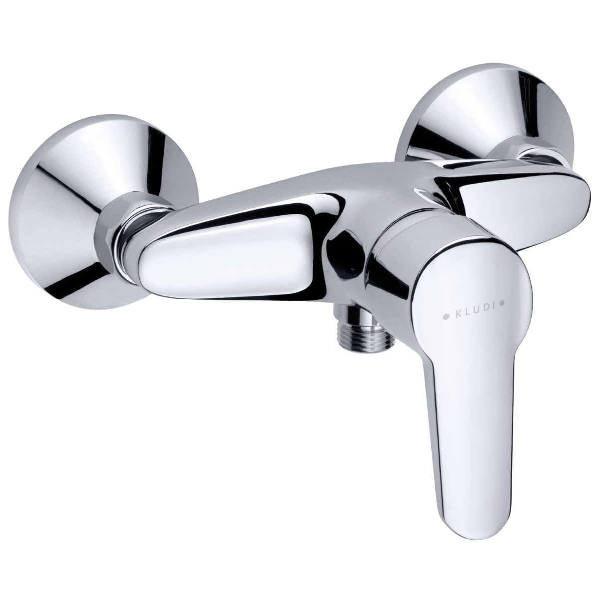 Kludi D-VISE egykaros zuhanycsaptelep fali kivitelben, kerámia vezérlőegységgel és visszafolyás-gátlóval. Z-csatlakozó, króm felület.