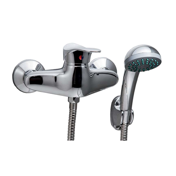 Omega egykaros zuhanycsaptelep, 8 mikronos krómozás, fém kar, Z-idom: 1/2x3/4", fali kivitel, zuhanyszett, kézi zuhanyfej, fali zuhanytartó.