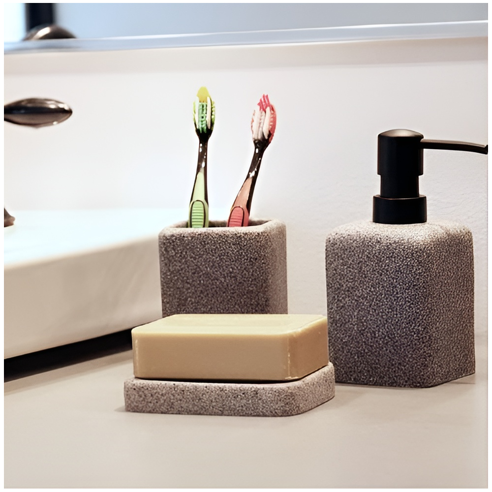 Szappanadagoló, szürke színű, kocka alakú. Színében harmonizál a család többi tagjával, amelyeket a 401346, 401431 és 401321 cikkszámokon lehet megtalálni.