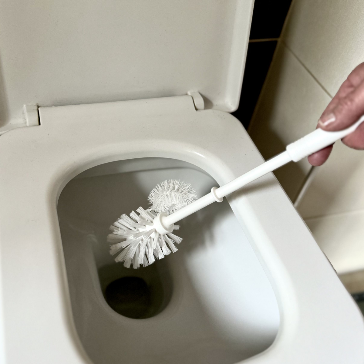 Peremtisztítós WC-kefe fehér színben, 9,5x38x8 cm méretben. Anyaga: polipropilén.