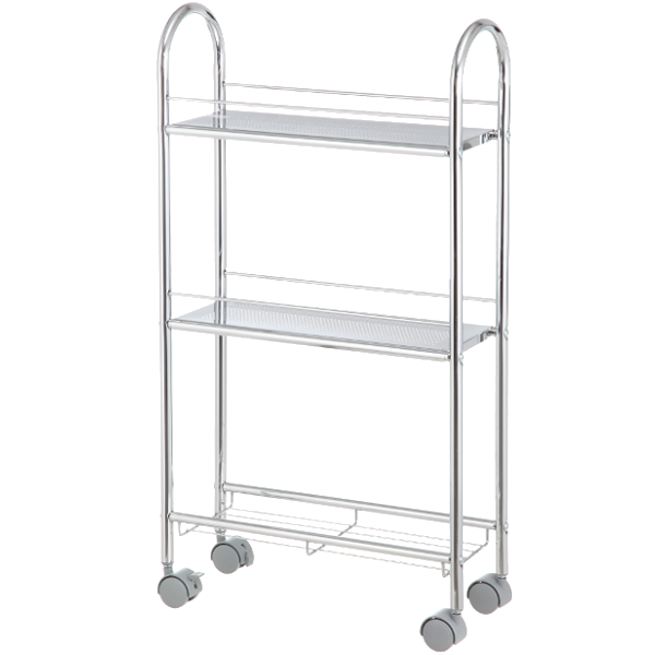 Krómozott 3 polcos, gurulós fürdőszobai tároló.