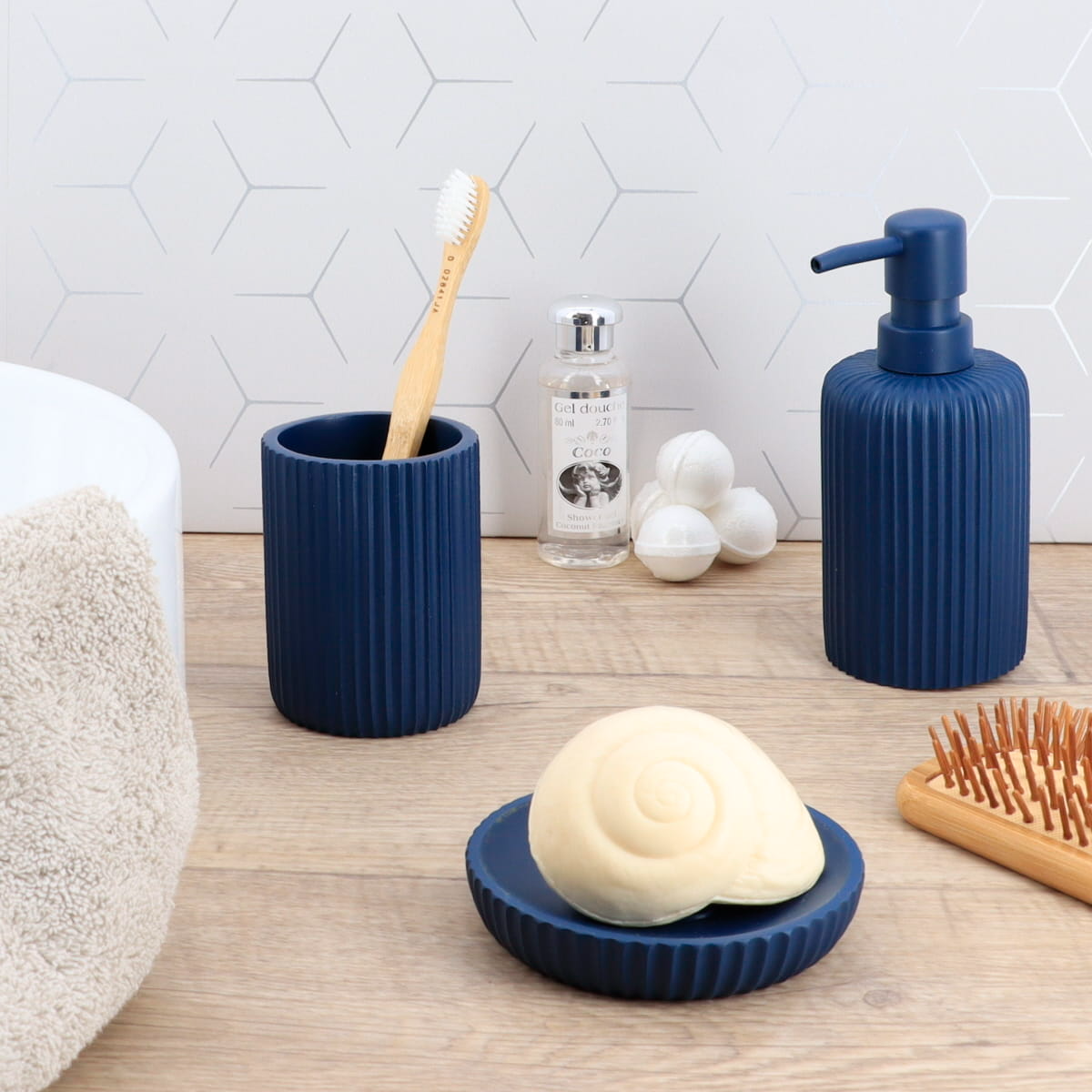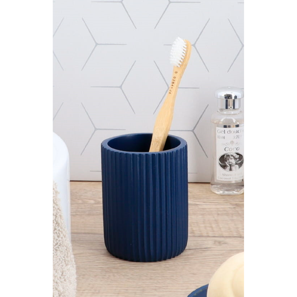 Ez a sötétkék színű, bordázott felületű fogkefetartó modern és friss megjelenést kölcsönöz bármely fürdőszobának. Az álló kialakítás könnyen használható megoldást kínál. Tartós anyagból készült, amely biztosítja a hosszú élettartamot és a könnyű tisztíthatóságot. Tökéletes választás azoknak, akik stílusos és funkcionális kiegészítőt keresnek.