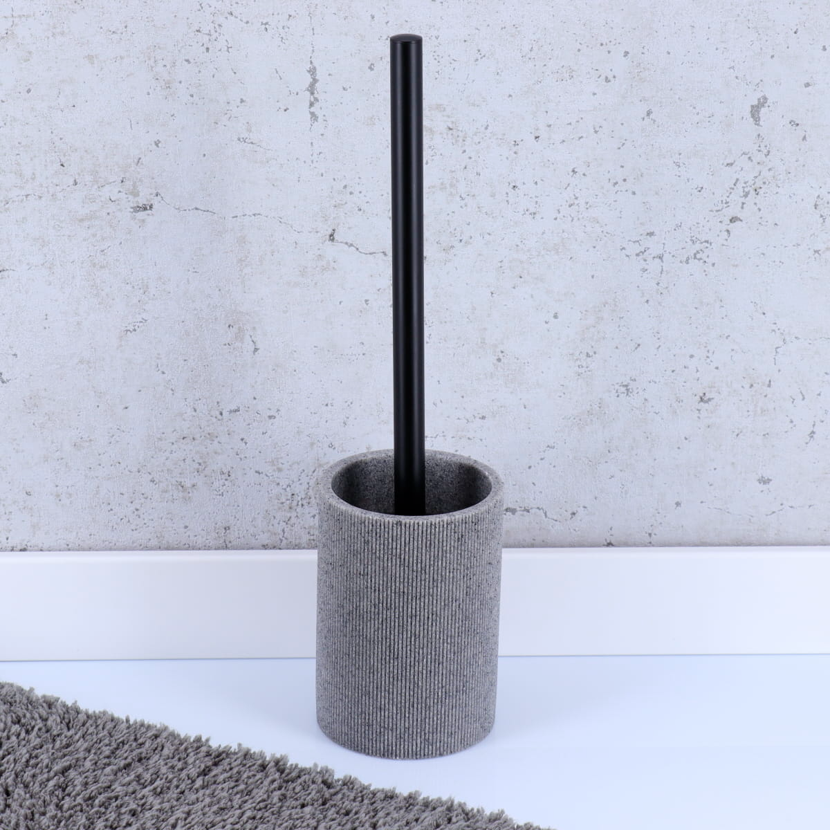 Ez a modern, szürke színű WC-kefe az elegáns bordázott felületű tartóval stílusos kiegészítője lesz bármely fürdőszobának. Tartós és könnyen tisztítható anyagból készült, amely biztosítja a hosszú élettartamot. Az álló kialakítás praktikus és helytakarékos megoldást kínál, miközben a fürdőszoba megjelenését is feldobja.