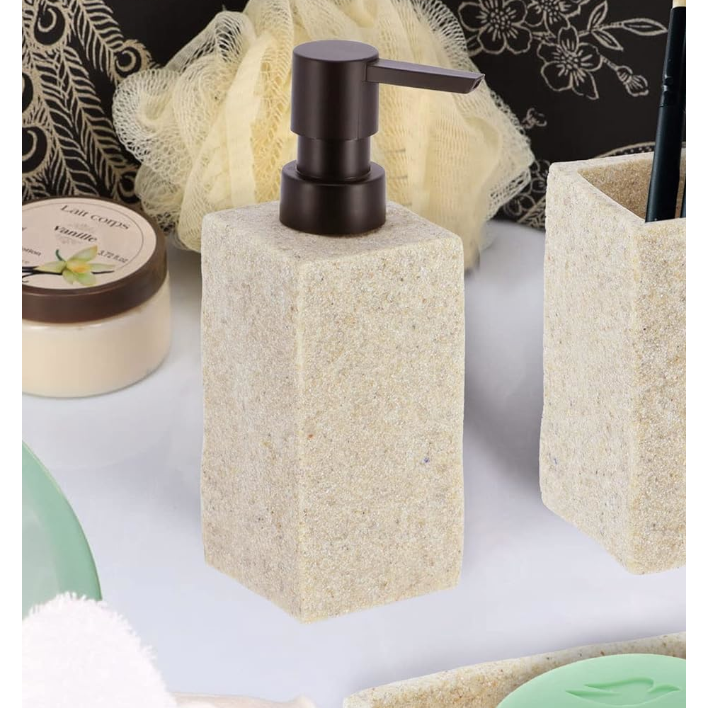 Stone szappanadagoló 260ml-es bézs színben, polirezinből. Színében harmonizál a család többi tagjával, amelyeket a 410581, 410579 és 410582 cikkszámokon lehet megtalálni.