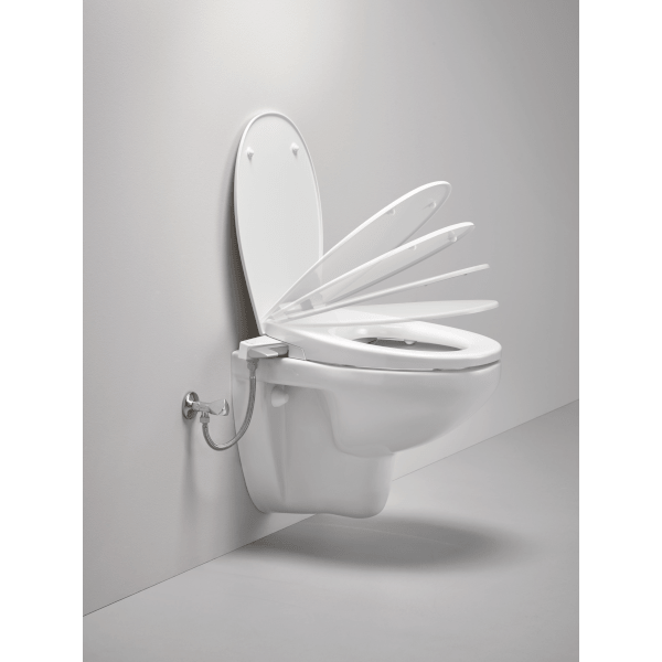 Duroplast WC-ülőke és fedél lecsapódásgáltó funkcióval, 2 különböző zuhany kar (1 általános mosófunkció, 1 hölgy mosófunkció), tiszta vizes elő- és utóöblítés a zuhanykarokra. Manuálisan működtetethető vezérlő kar, melyhez nem szükséges elektromos áram, állítható zuhanykar intenzitás. Flexibilis vízcsatlakozás 3/8". tartalmazza: rögzítőlap, szűrő. Nyomástartomány: 0.1 - 1.0 MPa (1 - 10 bar), EN 1717-nek megfelel. Univerzálisan használható a legtöbb WC kerámiára.
