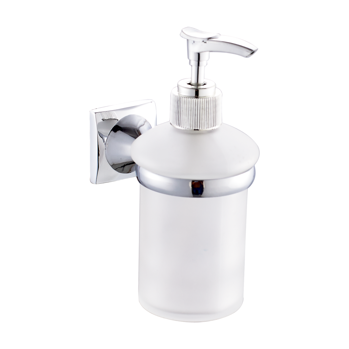 Dratos szappanadagoló - krómozott fém tartó - homokfúvott üveg adagoló - fali kivitel - a felszereléshez szükséges kiegészítőket tartalmazza