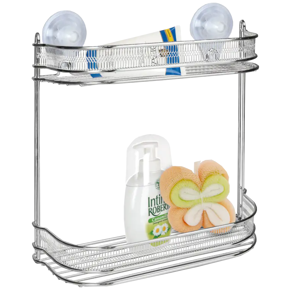 Flower kétrészes fürdőszobai polc, mérete 27x29x12 cm, anyaga: krómozott fém. A fürdőszobai polc segítségével helyet takaríthat meg fürdőszobájában és minden szükséges dolgot egy helyen tárolhat. A króm védőréteg a terméknek, amely nem rozsdamentes, mérsékelt korrózióvédelmet biztosít. Általános, karcmentes fémtisztító rendszeres használatával a termék élettartama jelentősen meghosszabbítható.