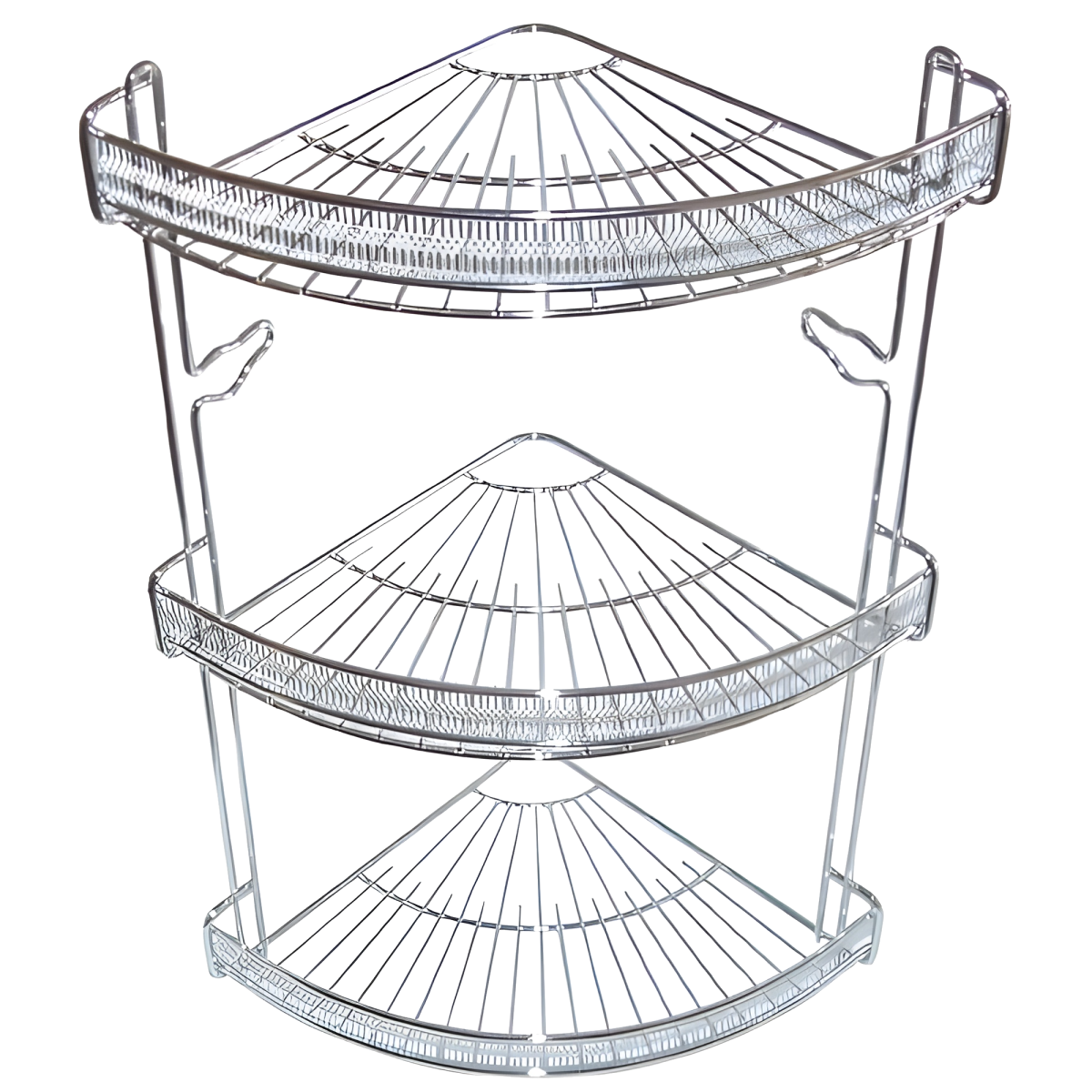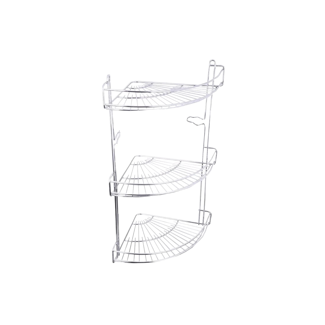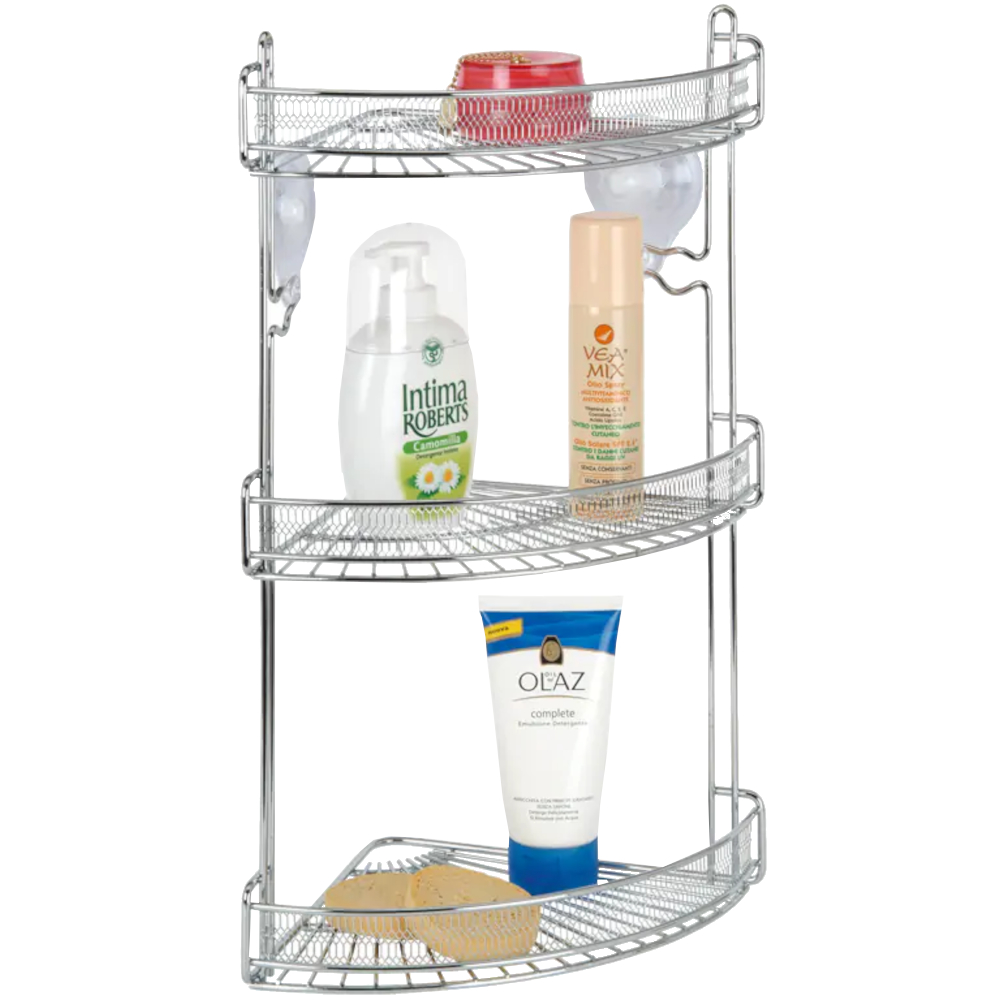 Flower háromrészes fürdőszobai sarokpolc, 22 x 22 x 47 cm, krómozott fém. A fürdőszobai sarokpolc tökéletes megoldás azok számára, akik szeretnének kihasználni minden rendelkezésre álló helyet a fürdőszobájukban. A króm védőréteg a terméknek, amely nem rozsdamentes, mérsékelt korrózióvédelmet biztosít. Általános, karcmentes fémtisztító rendszeres használatával a termék élettartama jelentősen meghosszabbítható.
