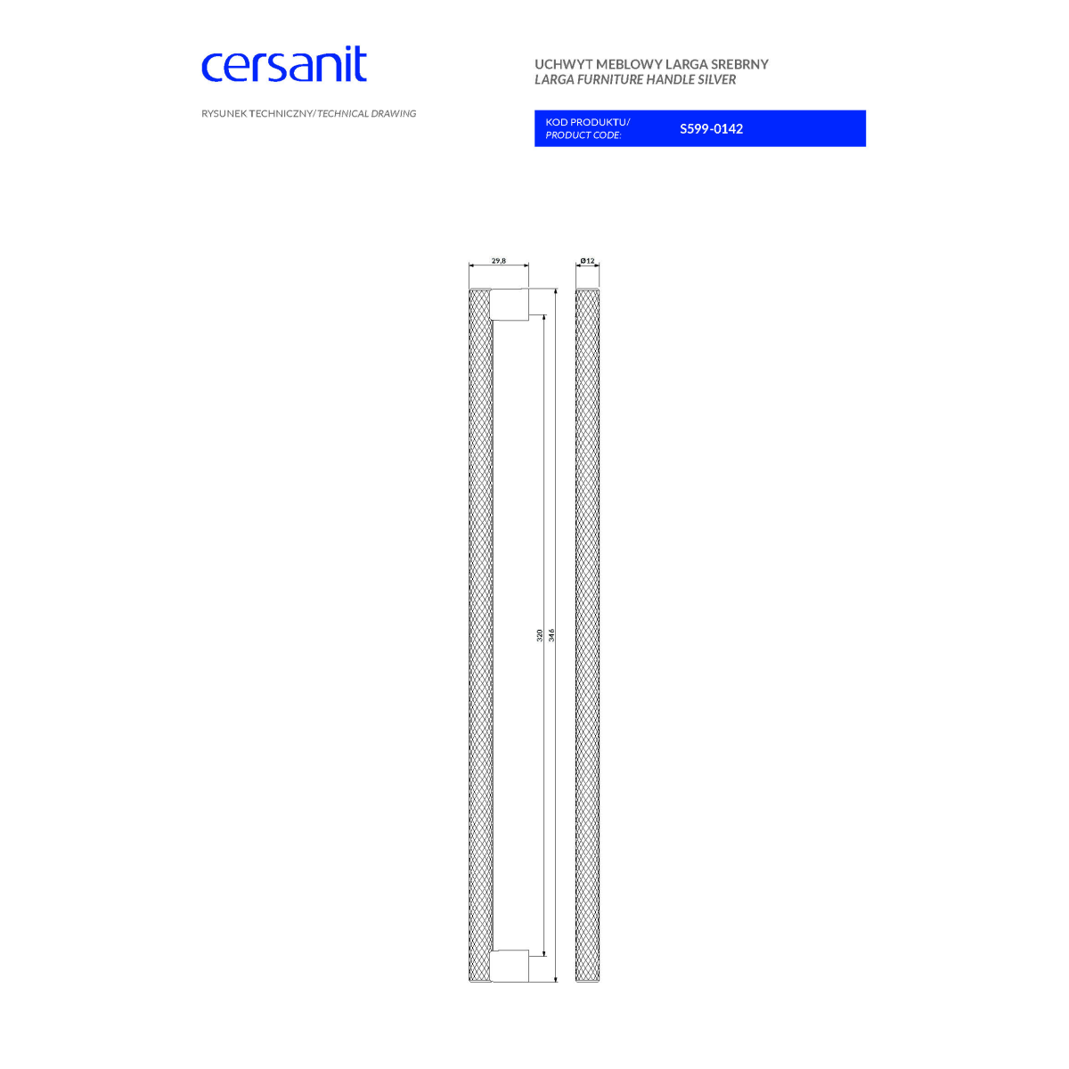 A 2 db-ból álló fogantyú szett érdesített felületű, ezüst színű.