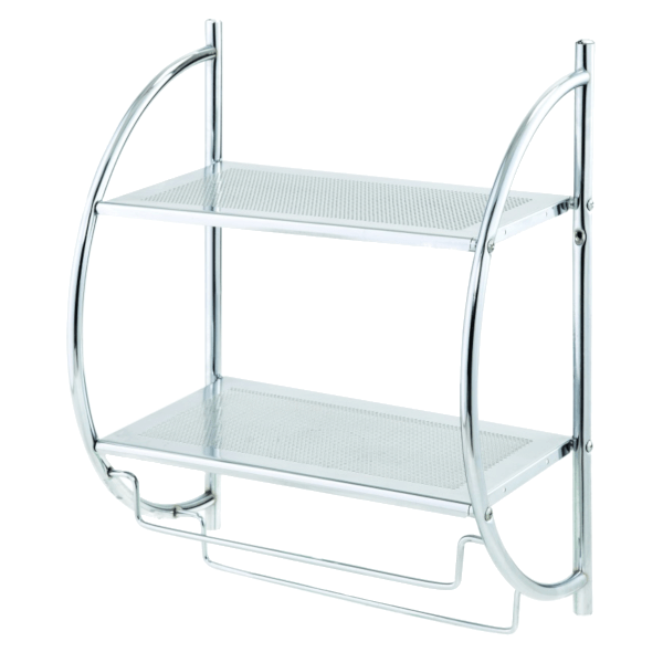 Krómozott acél, 2 szintes fali polc; teherbírás: maximum 12 kg.