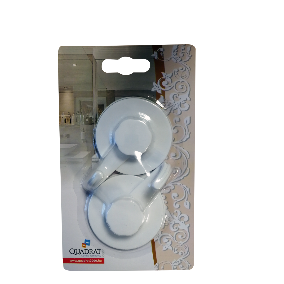 2 db-os vákuum tapadókorongos műanyag akasztó, fehér színben.