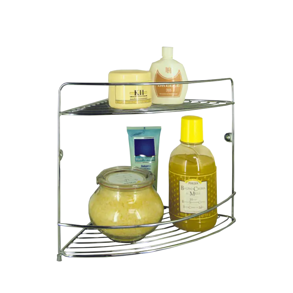 Kétrészes fürdőszobai sarokpolc, krómozott fém. A króm védőréteg a terméknek, amely nem rozsdamentes, mérsékelt korrózióvédelmet biztosít. Általános, karcmentes fémtisztító rendszeres használatával a termék élettartama jelentősen meghosszabbítható. A fürdőszobai sarokpolc tökéletes megoldás azok számára, akik szeretnének kihasználni minden rendelkezésre álló helyet a fürdőszobájukban.