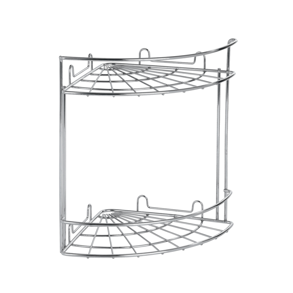 Slim kétrészes fürdőszobai sarokpolc, 18 x 18 x 25 cm, krómszínű, festett fém. A króm védőrétege a terméknek, amely nem rozsdamentes, mérsékelt korrózióvédelmet biztosít. Általános, karcmentes fémtisztító rendszeres használatával a termék élettartama jelentősen meghosszabbítható. A fürdőszobai sarokpolc tökéletes megoldás azok számára, akik szeretnének kihasználni minden rendelkezésre álló helyet a fürdőszobájukban.