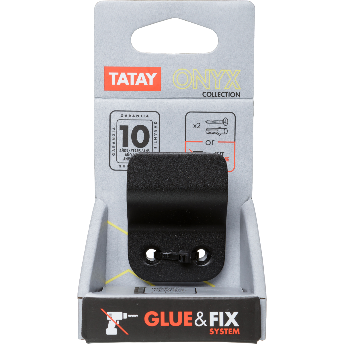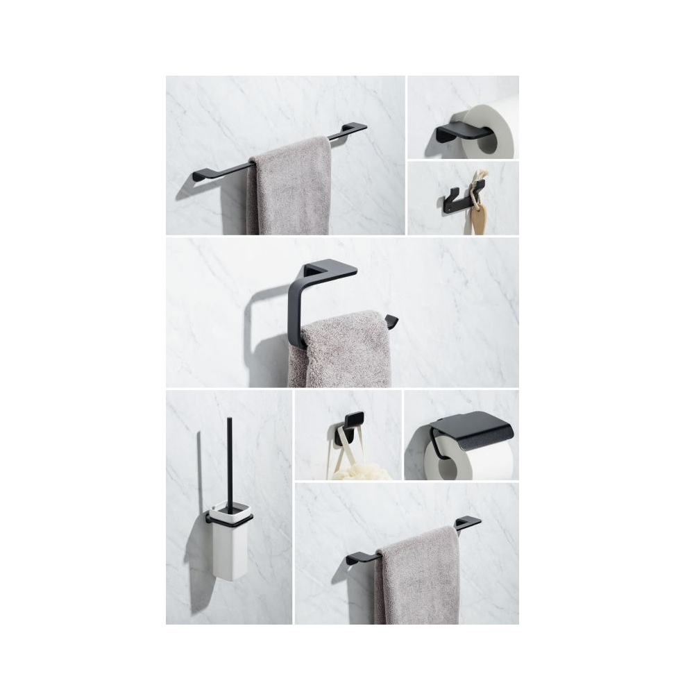 Rozsdamentes, matt fekete felülete modern megjelenést kölcsönöz fürdőszobájának, ráadásul a Glue&Fix rendszerrel a falak fúrása nélkül is felszerelhető.