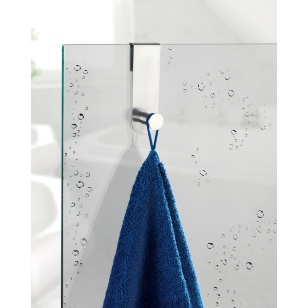Praktikus megoldás a fürdőszobában törölközők, fürdőlepedők, köntösök vagy szivacsok tárolására a zuhanykabinon. Egyszerűen felakasztható, és nem karcolja meg a kabin üvegét. Anyaga: rozsdamentes nemesacél, színe: matt.