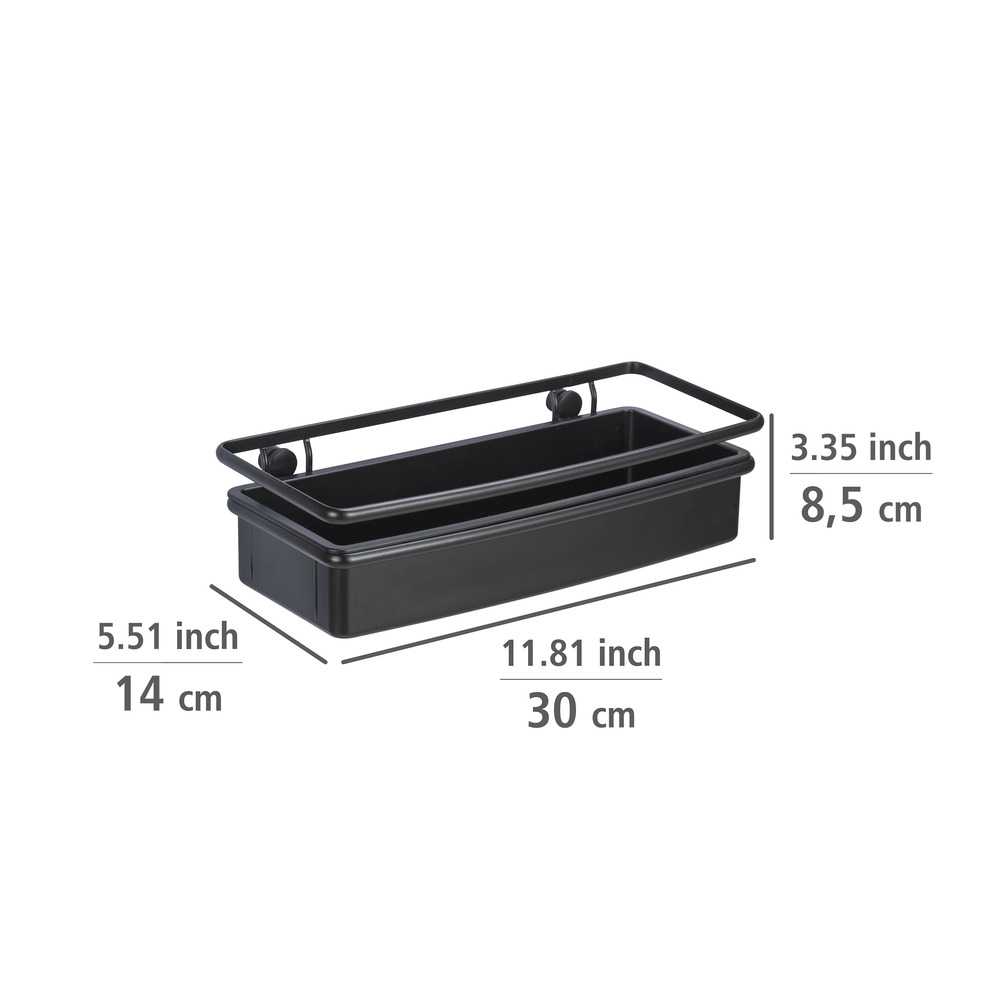 Innovatív és trendi fali kiegészítő matt fekete nemesacélból matt fekete műanyag polcbetéttel. Fúrással is rögzíthető, a csavarokat és tipliket tartalmazza a csomag. De akár fúrás nélkül is rögzíthető bármilyen felületre a külön megvásárolható UV-Loc rögzítő szett felhasználásával. Extrém erősen tart a csempén, natúr kövön, márványon, üvegen, fémen és egyes műanyag felületeken.