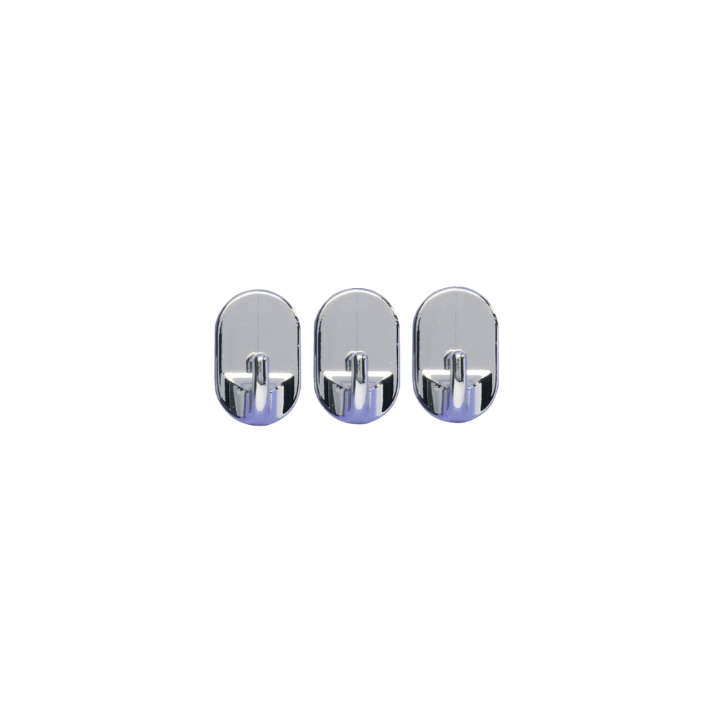 Praktikus megoldás a fürdőszobában törölközők, fürdőlepedők vagy köntösök felakasztására. Nincs szükség fúrásra, és gyerekjáték a felrakása. Felrakás előtt törölje le a felületet tiszta vizes törlőkendővel, hagyja megszáradni, húzza le a védőfóliát, és már fel is ragaszthatja, azonnal terhelhető, és maradék nélkül eltávolítható. Anyaga: műanyag, színe: króm. 3 db/csomag kiszerelésben értékesítjük.