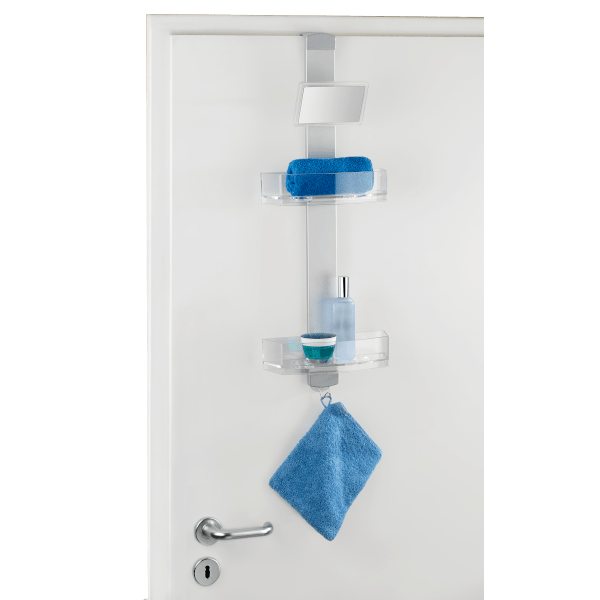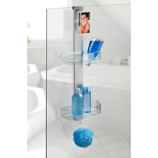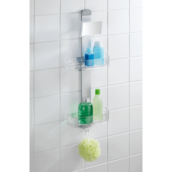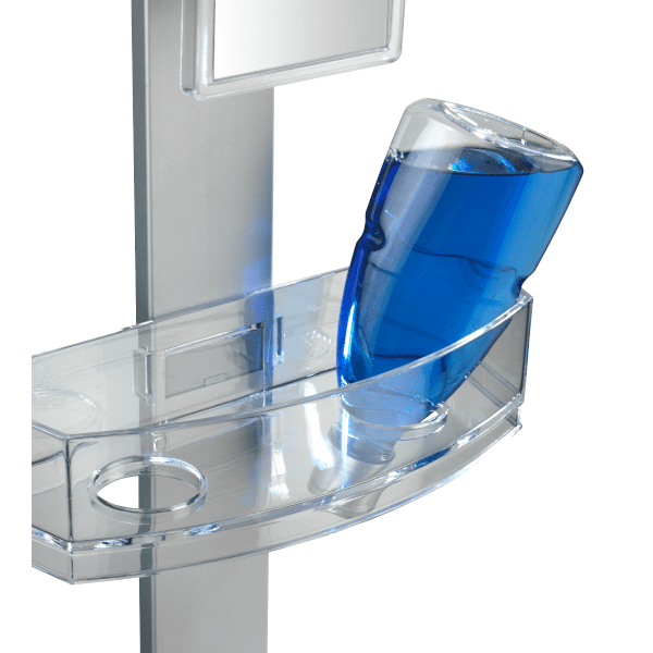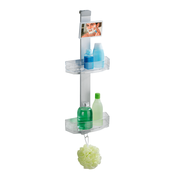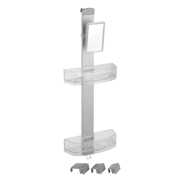 Wenko Premium zuhanypolc, kozmetikai tükörrel 25x71x10,5 cm-es méretben. A Prémium zuhanypolc masszív, rozsdamentes alumíniumból és műanyagból kiválóan alkalmas a helytakarékos tárolásra a fürdőszobában. A két polcon kényelmesen elhelyezhető a tusfürdő, sampon, szappan, szivacs. Mindkét polcban vannak lyukak a fejtetőre állítva tárolandó tubusoknak. Ezeken a lyukakon a víz is könnyen távozik. A polcok oldalra mozgathatóak. A nemesacél akasztóra fürdőkesztyű, szivacs, kefe akasztható. A kozmetikai tükör forgatható és páramentes. A polc felszerelése gyerekjáték! Egyszerűen akassza a zuhanykabinra a 11, 20 vagy 40 mm belső mérettel rendelkező adapterrel. A falra szereléshez szintén tartalmazza a csavarokat és tipliket.