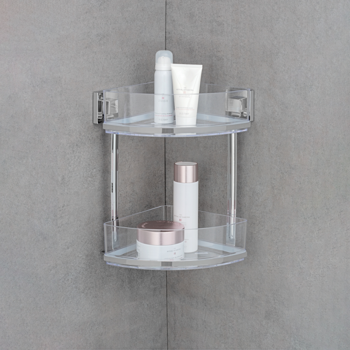 Innovatív és trendi fali kiegészítő fúrás nélküli rögzítéssel. Letisztult vonalak, negyedköríves formavilág fényes krómozott nemesacélból és magas minőségű műanyagból. Az átlátszó negyedköríves polc levehető. A Vacuum-Loc rögzítési rendszernek köszönhetően nem kell fúrnia, mégis jól tart akár enyhén strukturált felületeken is (csempe, tükör, üveg, fóliázott MDF bútorok). Egyszerűen felrakható. Először takarítsa le egy tiszta vizes törlőkendővel a felületet, és hagyja megszáradni. Utána húzza le a védőfóliát, helyezze fel a falra a rögzítő adaptert, tolja rá a középpontra a dugattyút a pumpával, és húzza ki a pumpát a dugattyúból, amíg pukkanó hangot nem hall. Ezt ismételje meg még háromszor. Azonnal terhelhető akár 33 kg-ig, illetve bármikor áthelyezhető.