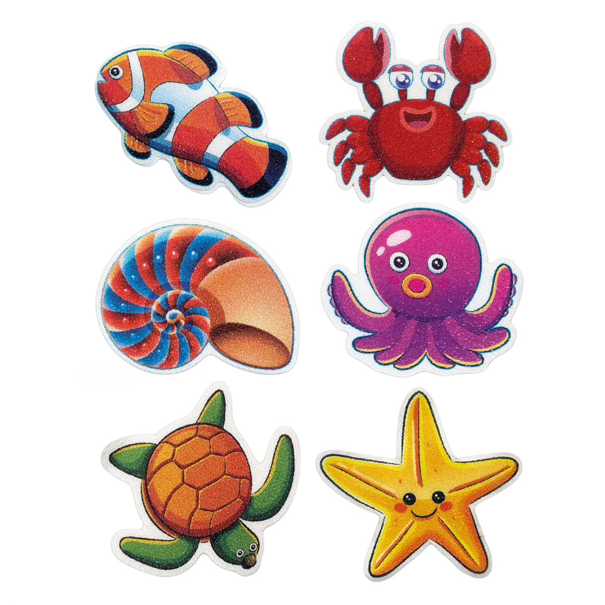 Csúszásgátló EVA/PE 10x10cm többszínű tengeri motívum, öntapadós, 6db/cs.