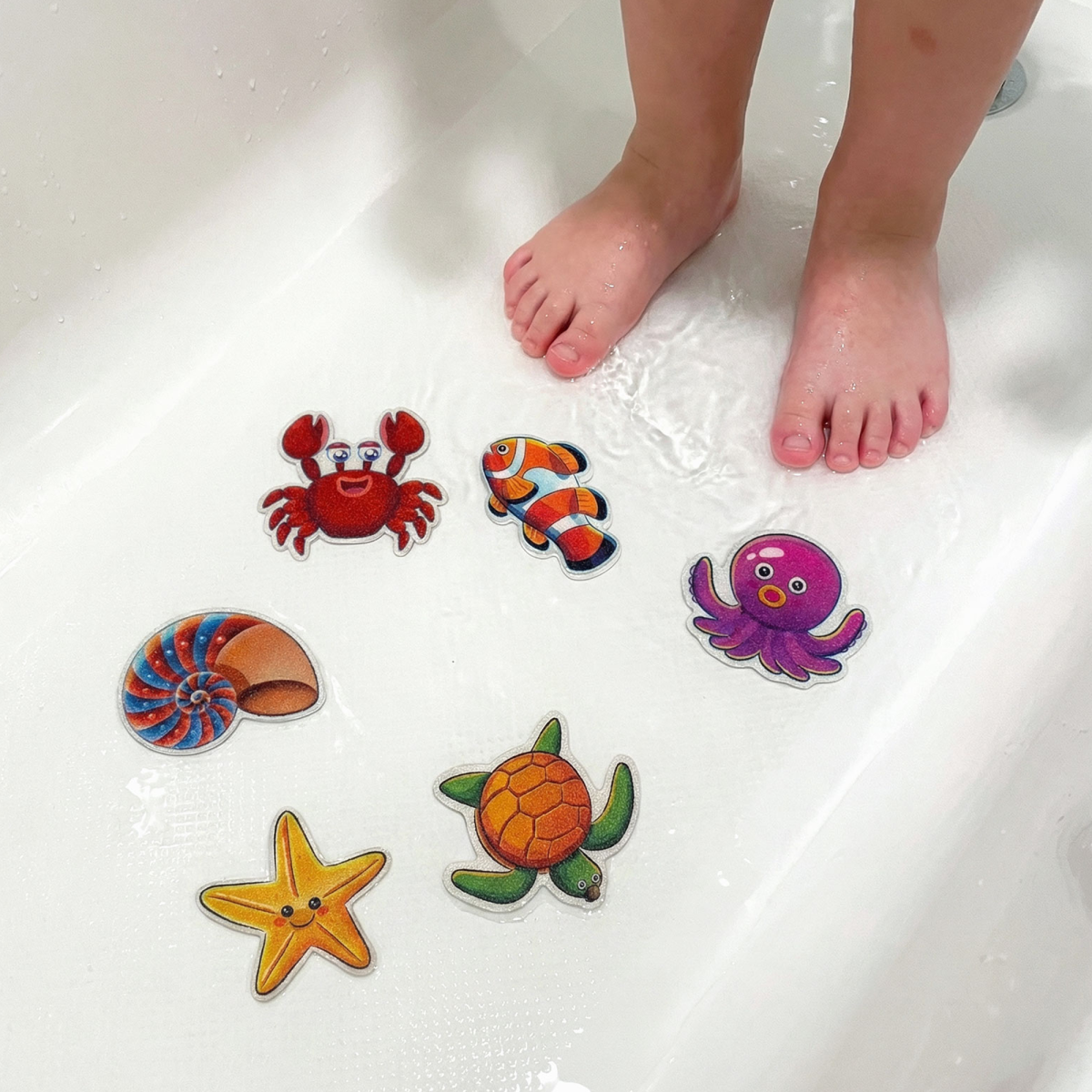 A tengeri motívumos csúszásgátló matrica szett (6 db) praktikus és dekoratív megoldás csúszós felületek biztonságosabbá tételéhez. Az öntapadós kivitelnek köszönhetően könnyen felhelyezhető, a vidám tengeri minták pedig barátságos hangulatot teremtenek a fürdőszobában vagy más vizes környezetben. A matricák vízzel érintkezve is stabilan a helyükön maradnak, így hozzájárulnak a biztonságosabb fürdéshez és zuhanyzáshoz.