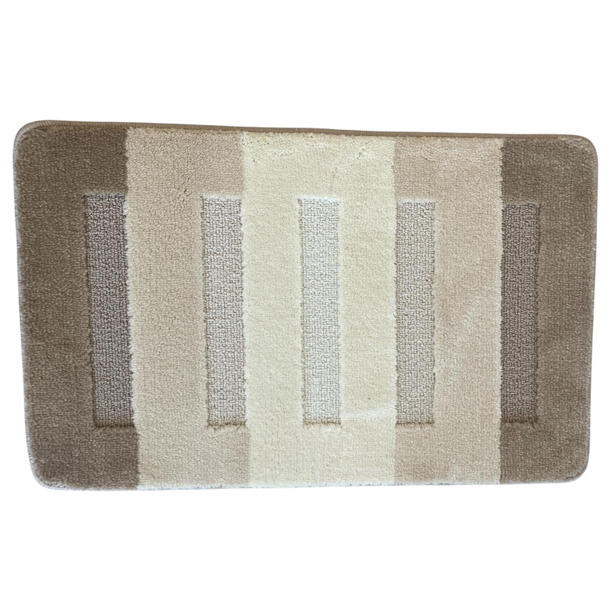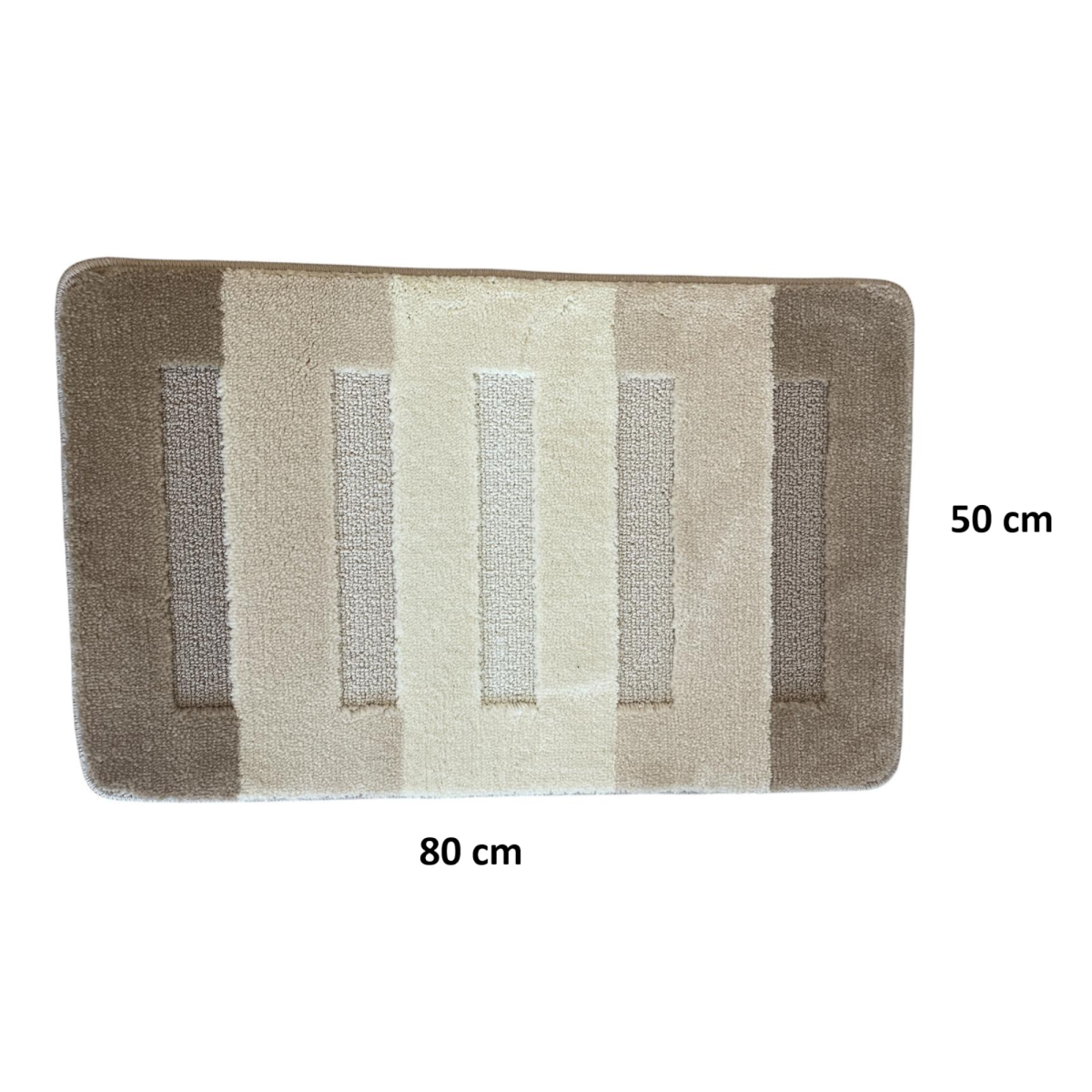 A 80 cm x 50 cm-es méret ideális nagyobb alapterületű helyiségekhez is, a bézs árnyalatokból álló sávos mintázat pedig jól illik modern és klasszikus stílushoz egyaránt.