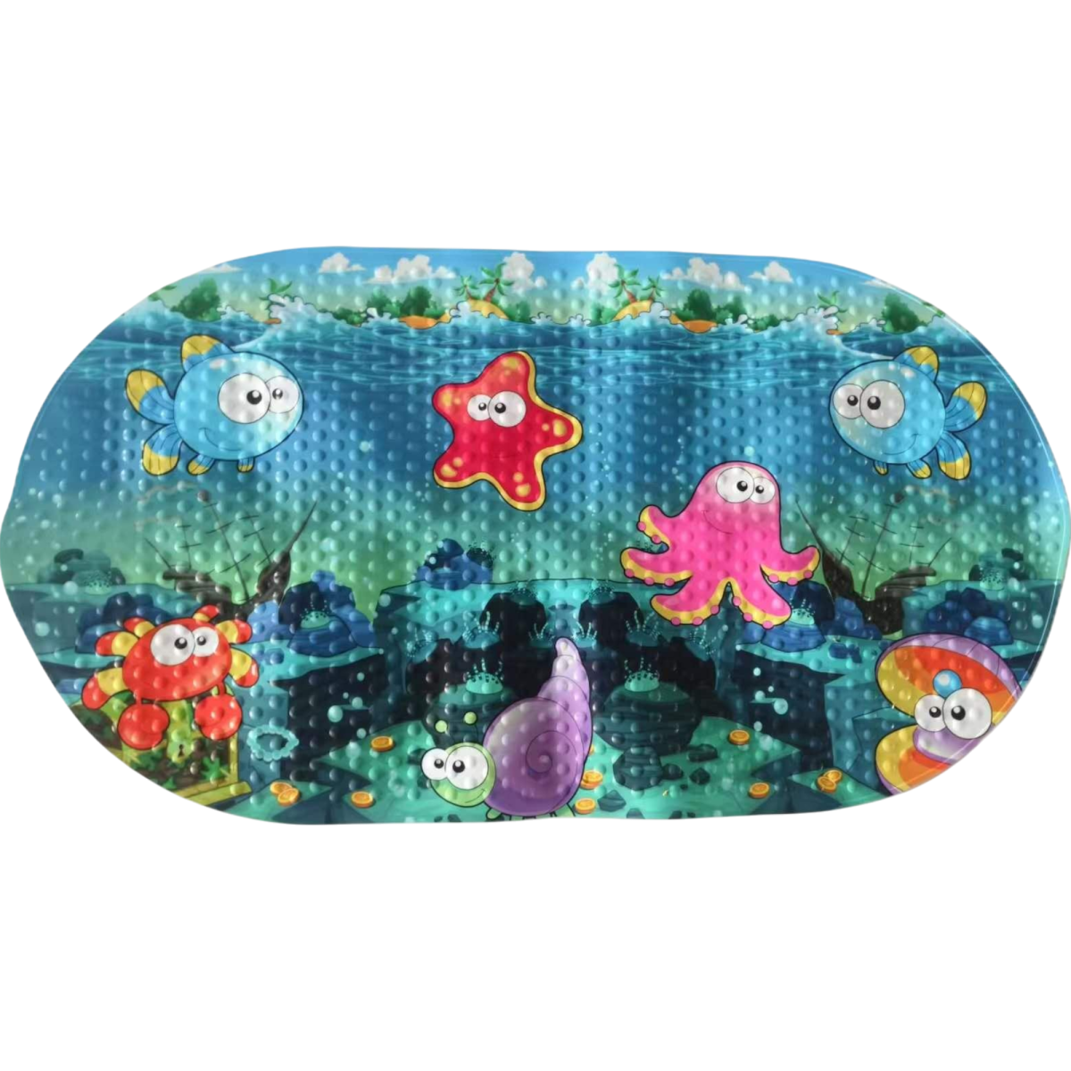 A Hoppit Atlantis csúszásgátló praktikus és dekoratív megoldás a biztonságos fürdéshez. Tartós PVC anyagból készült, amely jól tapad a kád vagy zuhany aljához, így segít megelőzni az elcsúszást nedves felületen. A tengeri mintás design játékos, vidám hangulatot visz a fürdőszobába, különösen gyerekek számára.