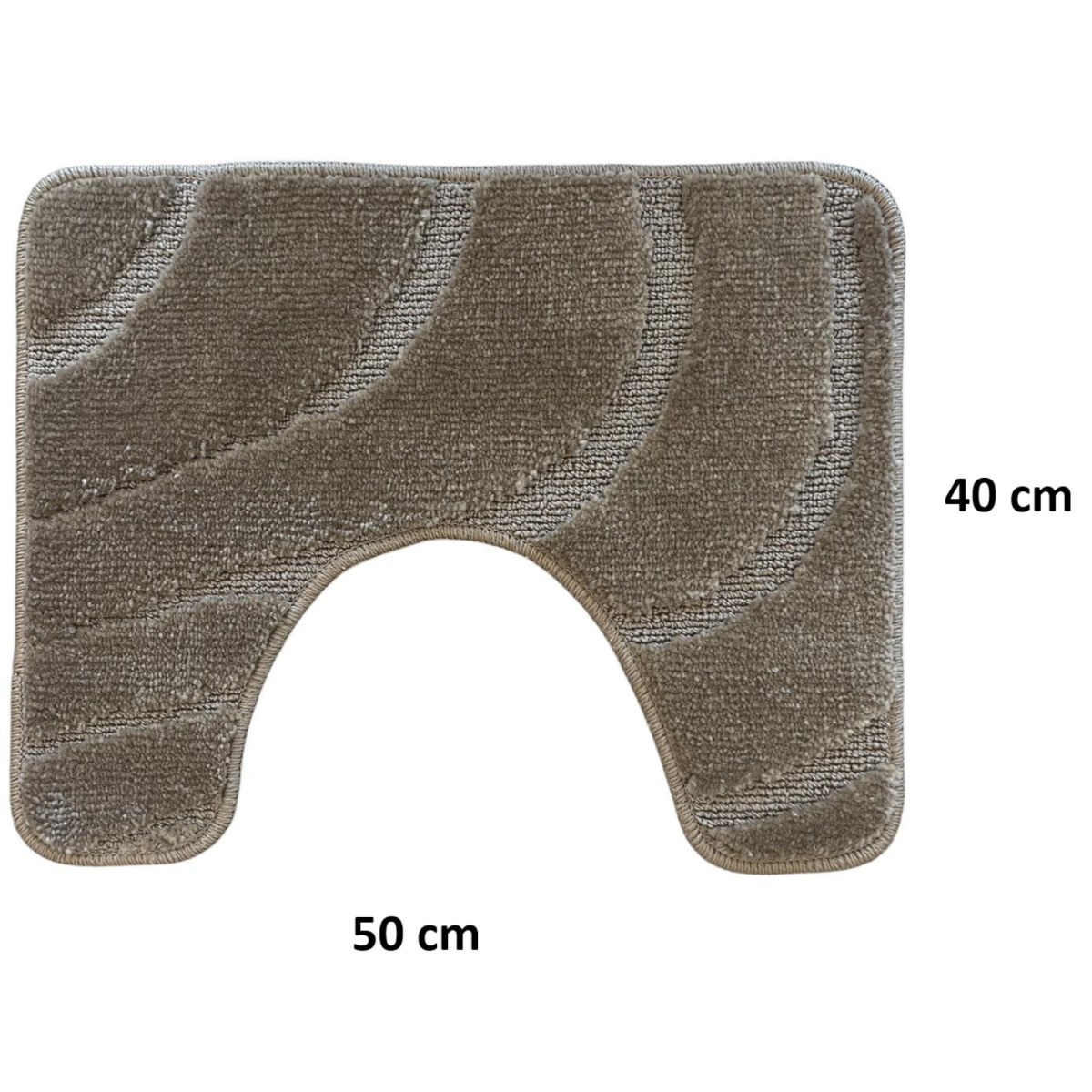 Az 50 cm x 40 cm-es méretű szőnyeg kivágott formája jól illeszkedik a WC talapzatához, így esztétikusabb megjelenést és kényelmesebb használatot biztosít.