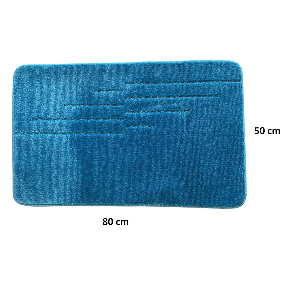 Türkiz színével friss és üde hangulatot visz a térbe, finoman csíkozott mintázata pedig diszkrét díszítőelemként is funkcionál. A 80 cm x 50 cm-es méret ideális választás mosdó, zuhanyzó vagy kád elé.