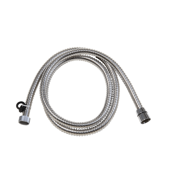 Fém zuhanycső 150 cm hosszú kivitelben, egy kúpos és egy normál hollandival a végeken.