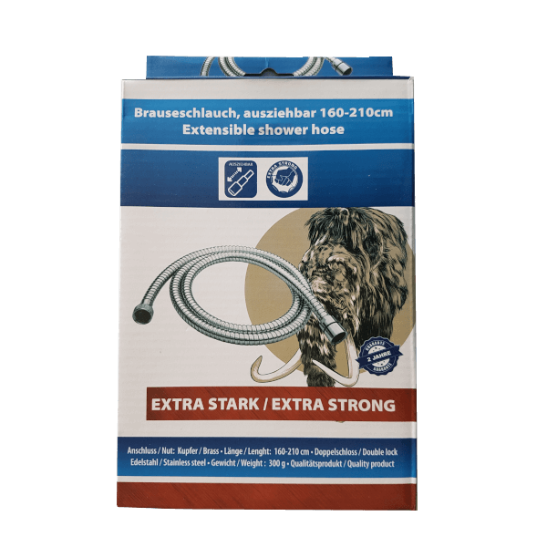Megerősített kialakítású fém zuhanygégecső. Kihúzható: 160-210 cm. Használatával a zuhanyfej egyszerű, csavarozó mozdulattal a csaptelephez rögzíthető.