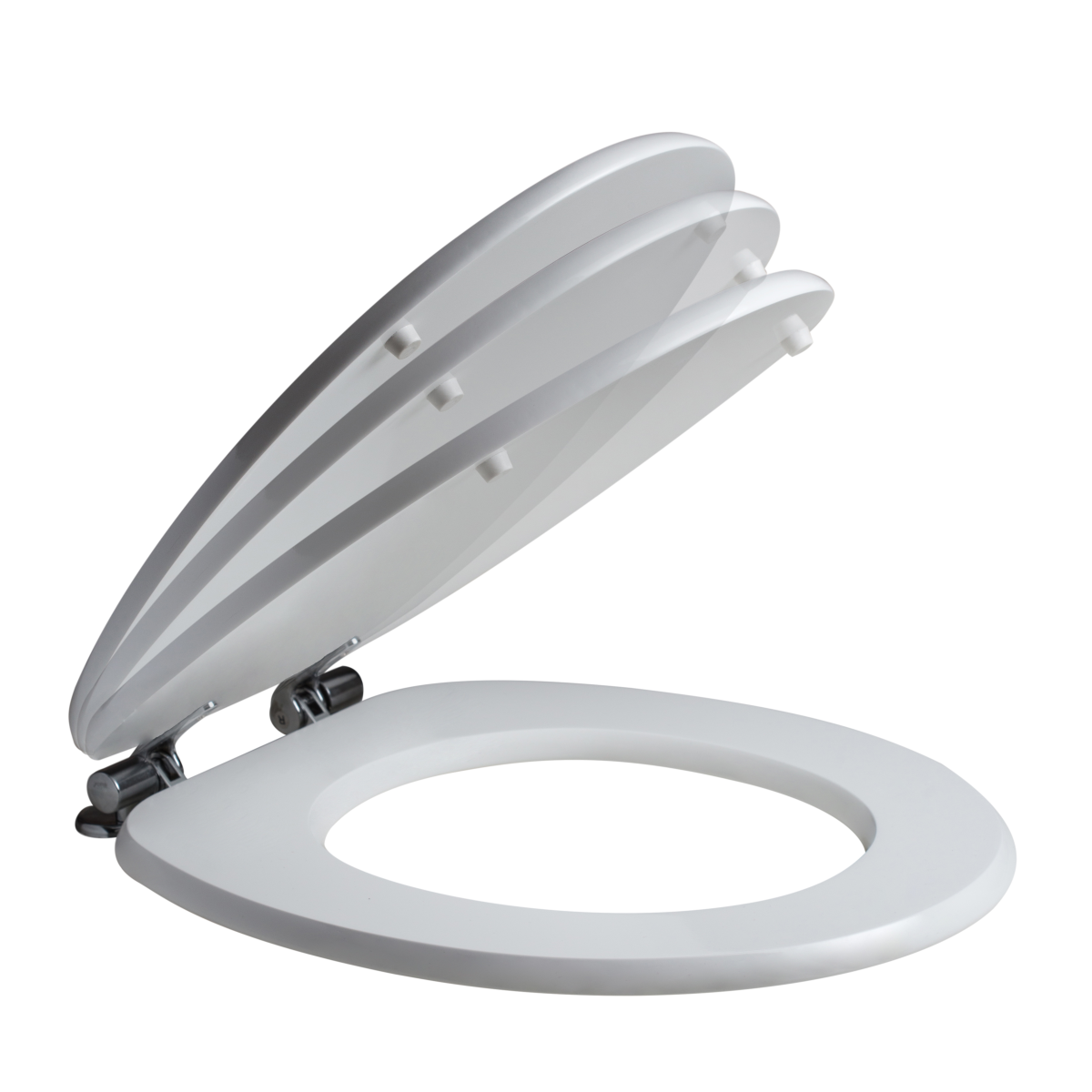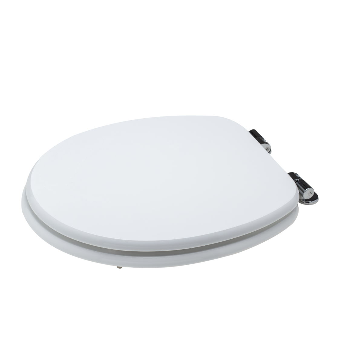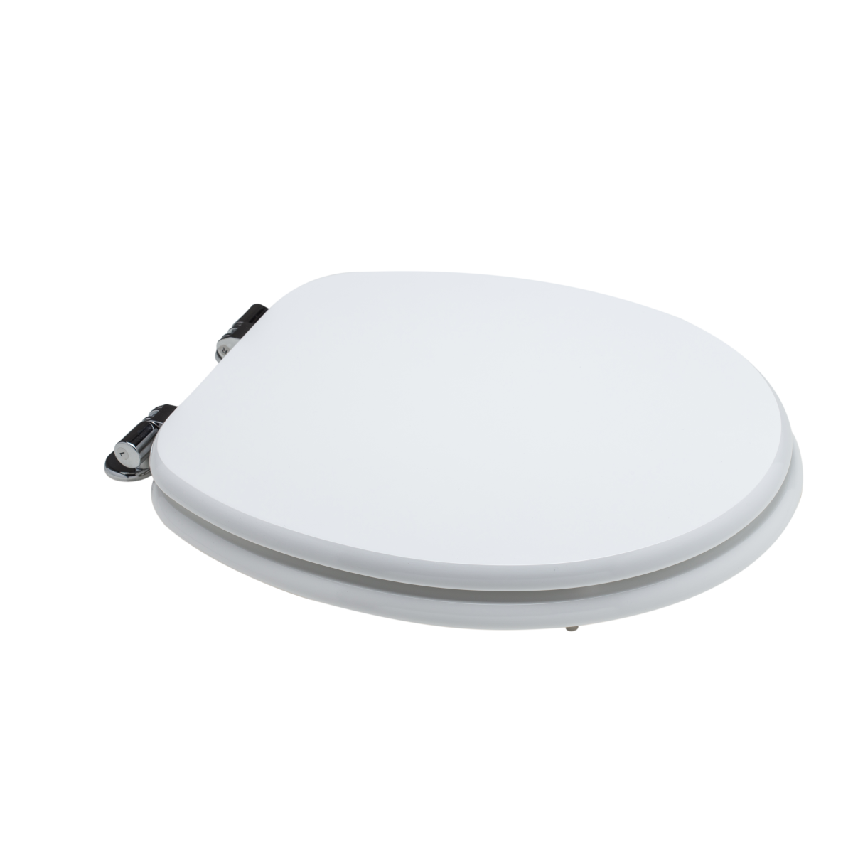 Univerzális fehér színű WC-ülőke, FSC minősítésű, MDF anyagból, fém lecsapódásgátlós zsanérral. Ülőke vastagsága: 18mm.