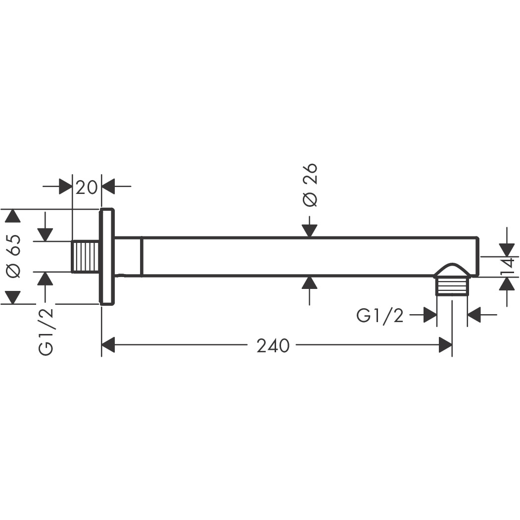 Zuhanykar hosszúsága: 240 mm, szár átmérője Ø: 26 mm; szerelési mód: falsíkon kívüli szerelés; anyag: sárgaréz; kivitel: 90°-os szögelem; csatlakozás módja: ½".