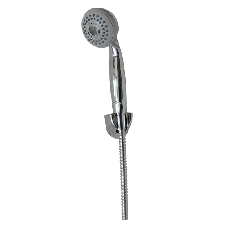 Lilop zuhanyszett - háromfunkciós, szilikonbetétes, vízkőmentes, gőzkrómozott, műanyag kézi zuhanyfej - zuhanytartó fali fix - 150 cm-es, fém gégecső - tartalmazza a falra rögzítéshez szükséges tartozékokat