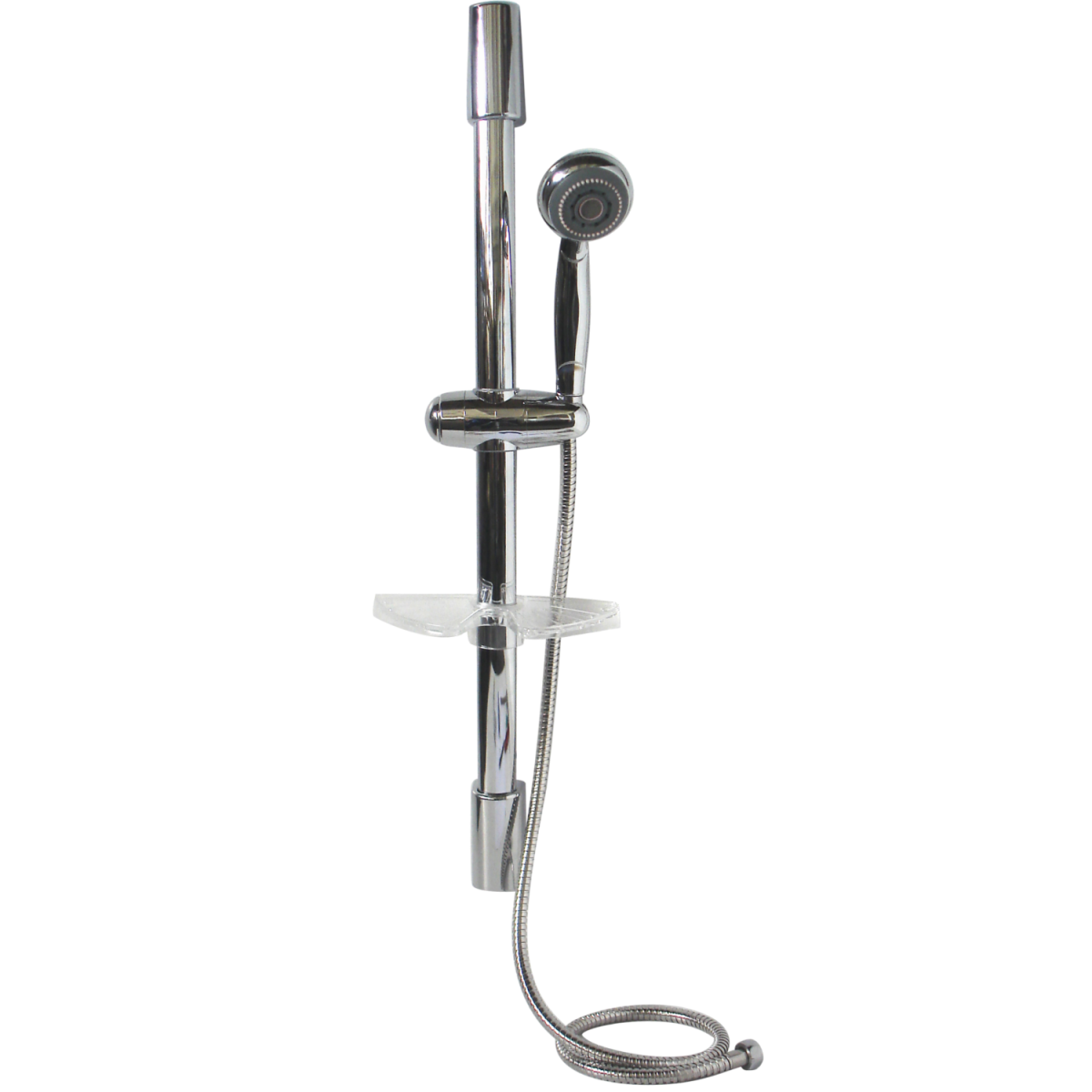 Maxi zuhanyszett - háromfunkciós, szilikonbetétes, vízkőmentes, gőzkrómozott, műanyag kézi zuhanyfej - 60 cm-es, gőzkrómozott zuhanytartó rúd - 150 cm-es, fém gégecső - műanyag szappantartó - tartalmazza a falra rögzítéshez szükséges tartozékokat