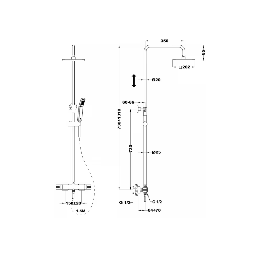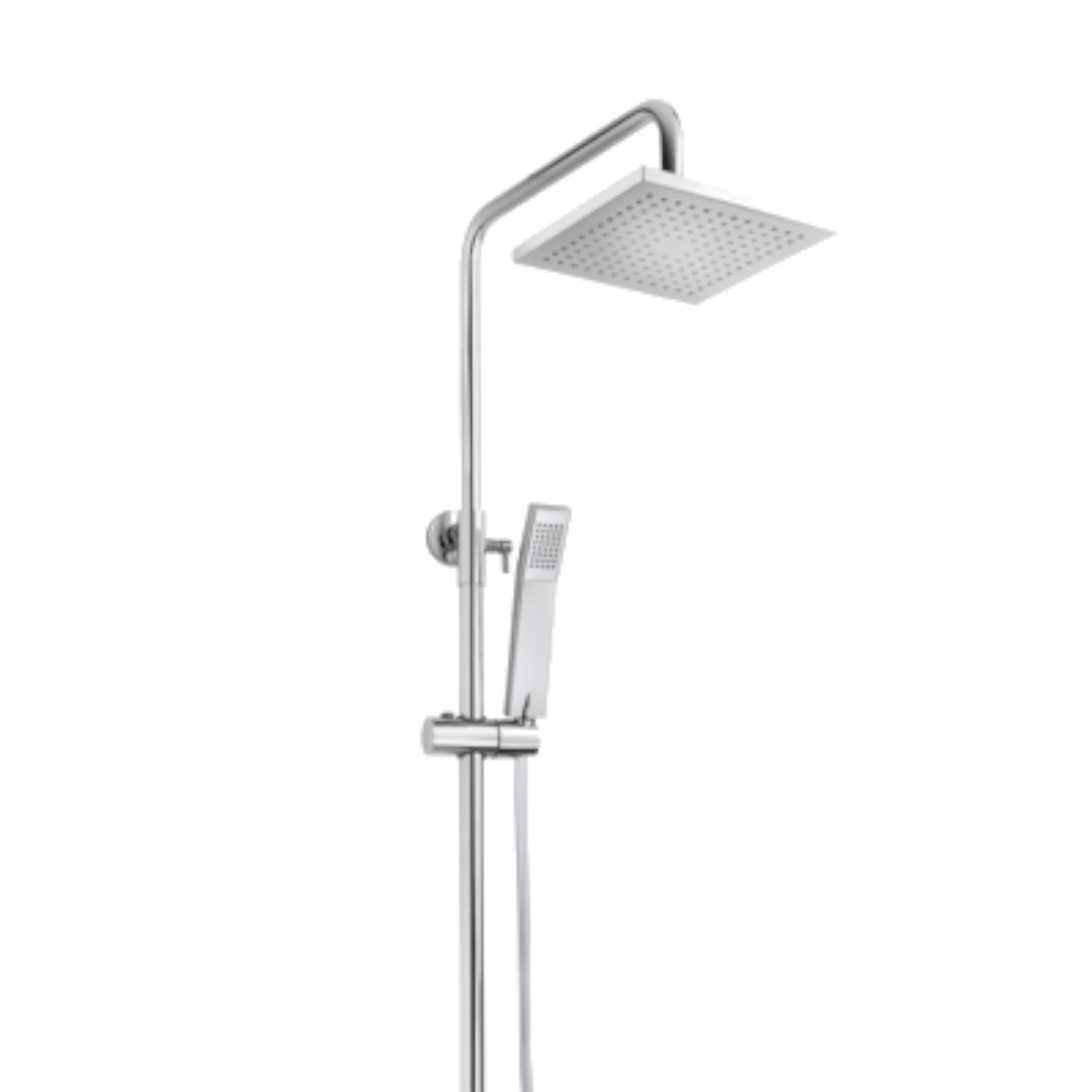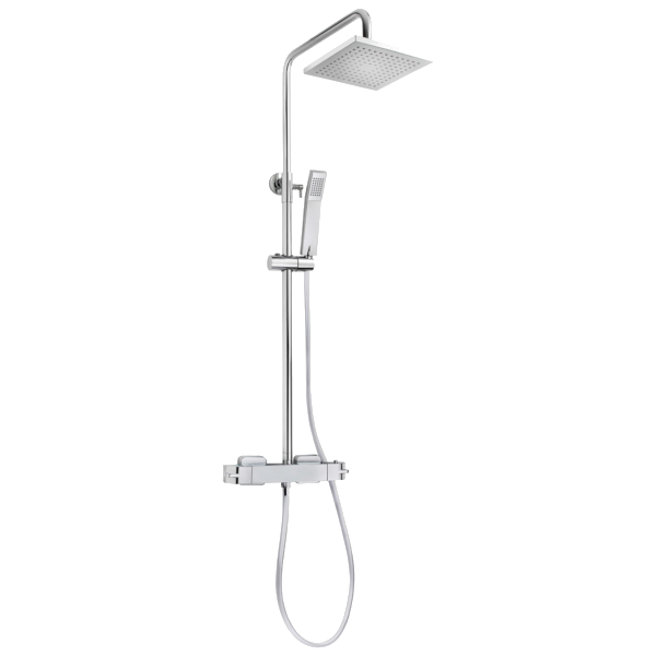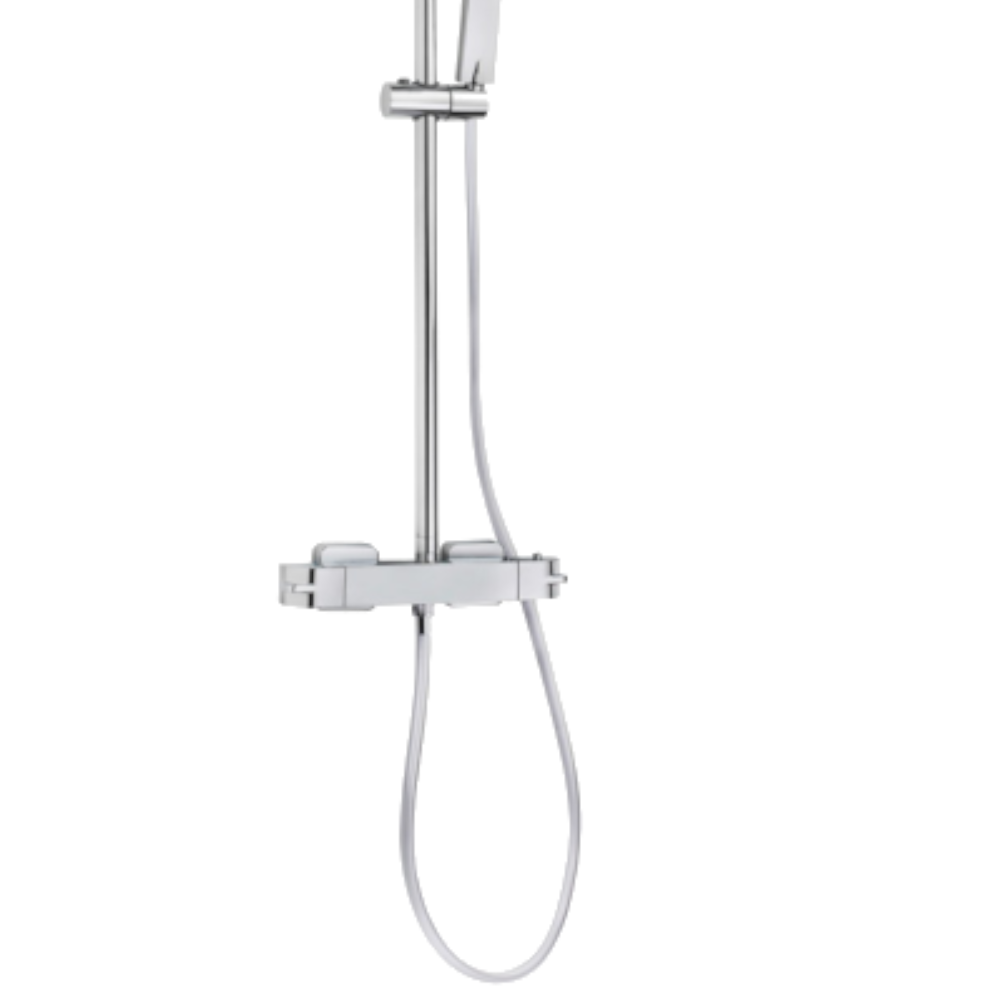 Teka Soller Dual Control zuhanyrendszer felső vízkimenettel. Állítható teleszkópos felszállócső (min. magasság 80 cm, maximum magasság 131 cm). ABS vízkőmentes zuhanyfej, 20.2 cm x 20.2 cm. Egy funkciós kézizuhany. 1.5 m-es ezüst PVC flexibilis, csavarodásmentes gégecső. Állítható kézizuhany tartó. Hideg érintés rendszer. Kerámia zuhanyváltó. Visszaáramlásgátló szelep. Szűrővel védett visszaáramlás gátló szelepek.