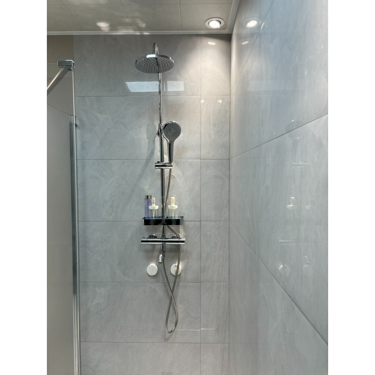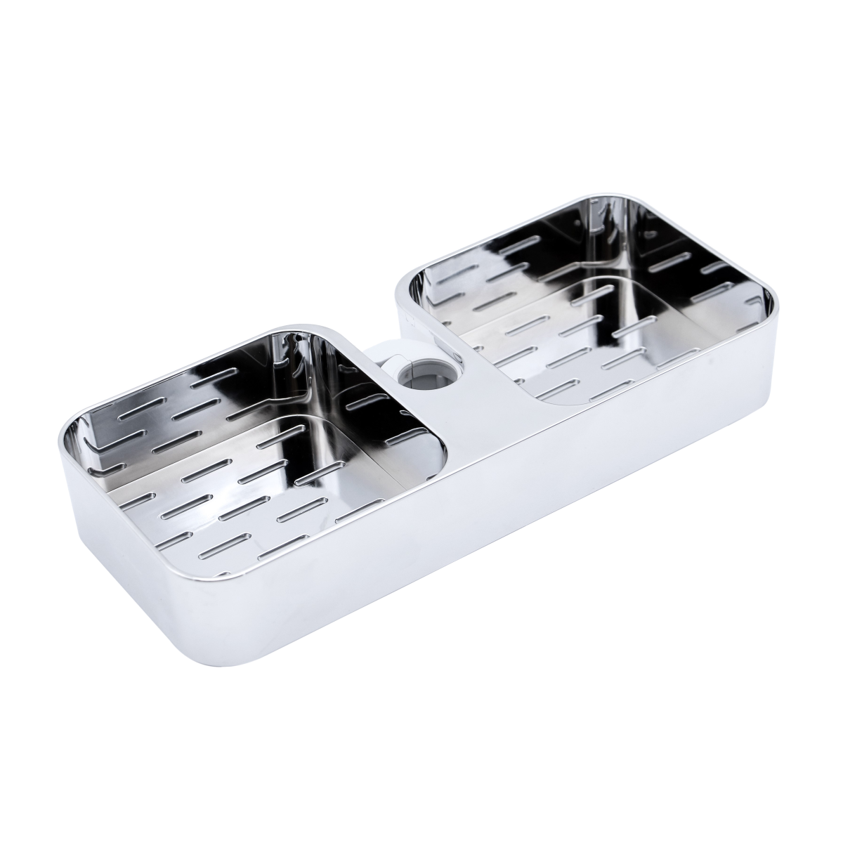 A SANOTECHNIK zuhanyrúdra szerelhető polc/szappantartó egy praktikus és esztétikus kiegészítő a fürdőszobához. 3 különböző méretű rögzítővel szállítjuk, a polc 19, 22 és 25 mm átmérőjű zuhanyrúdra is szerelhető. A krómozott kivitel elegáns megjelenést biztosít, és könnyen tisztítható, így hosszú távon is megőrzi fényét és minőségét.