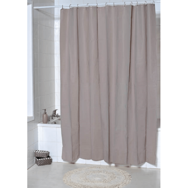 Taupe színű zuhanyfüggöny 180×200 cm – praktikus védelem a fürdőszobában
