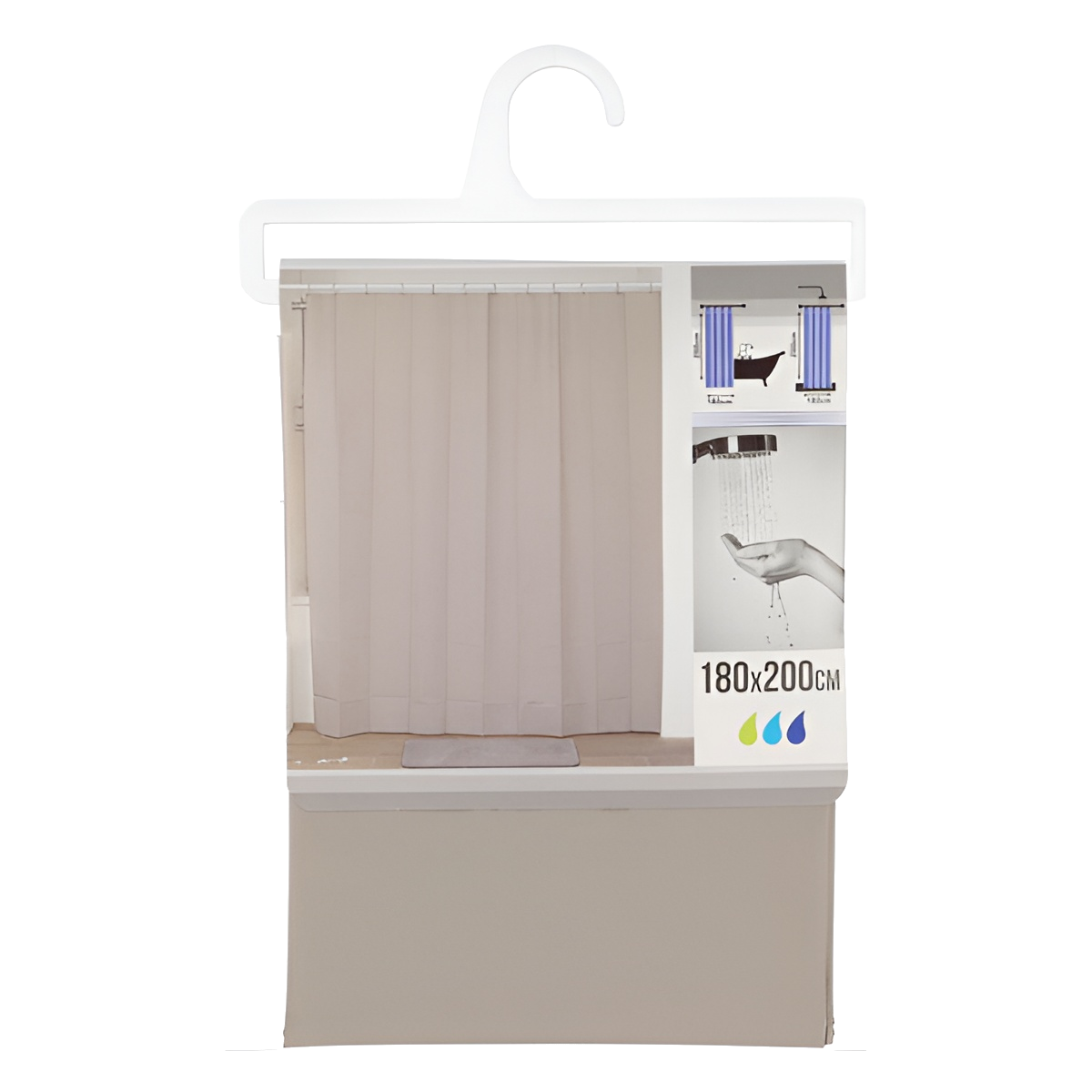 A 180×200 cm-es taupe színű zuhanyfüggöny stílusos és funkcionális kiegészítője a fürdőszobának. A PEVA anyag vízlepergető tulajdonságának köszönhetően segít szárazon tartani a padlót, miközben elegáns, visszafogott színével jól illeszkedik bármilyen fürdőszobai enteriőrhöz.